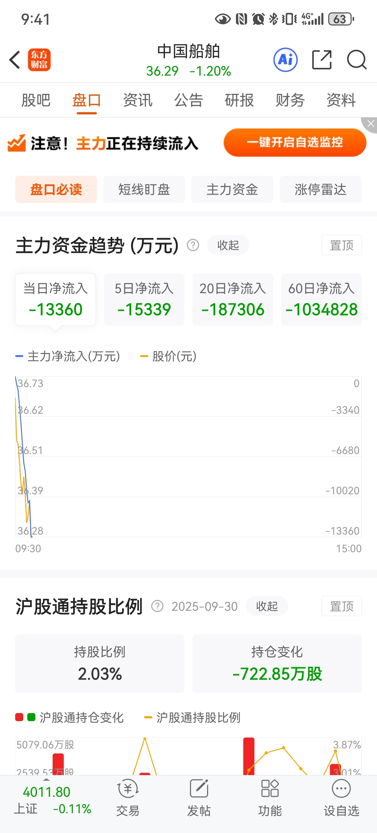 $中国船舶(SH600150)$ 看这节奏,今天得跑五个亿以上