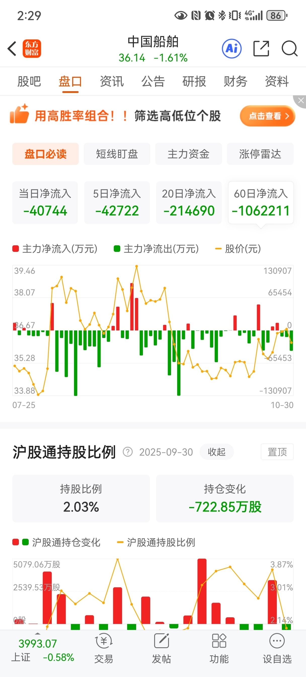 $中国船舶(SH600150)$ 60日的资金流出一直在100亿以上,细思极恐!