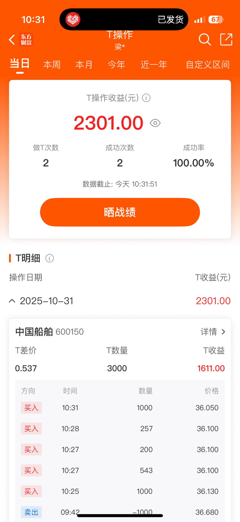 $中国船舶(SH600150)$ 做T成功