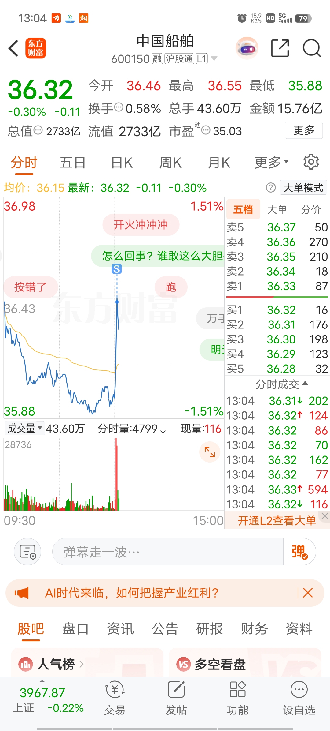 $中国船舶(SH600150)$ 难搞,溜了溜了