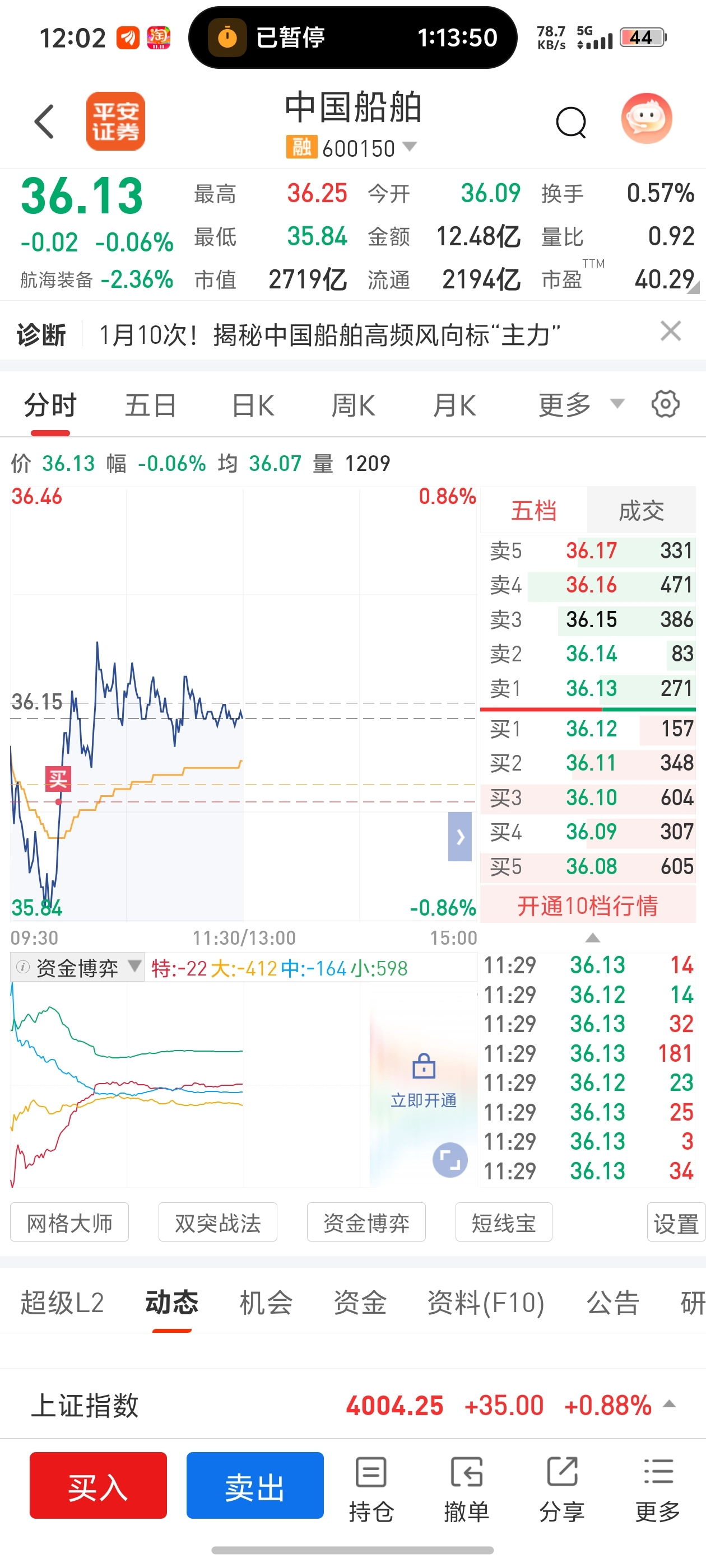 36.01买入中国船舶