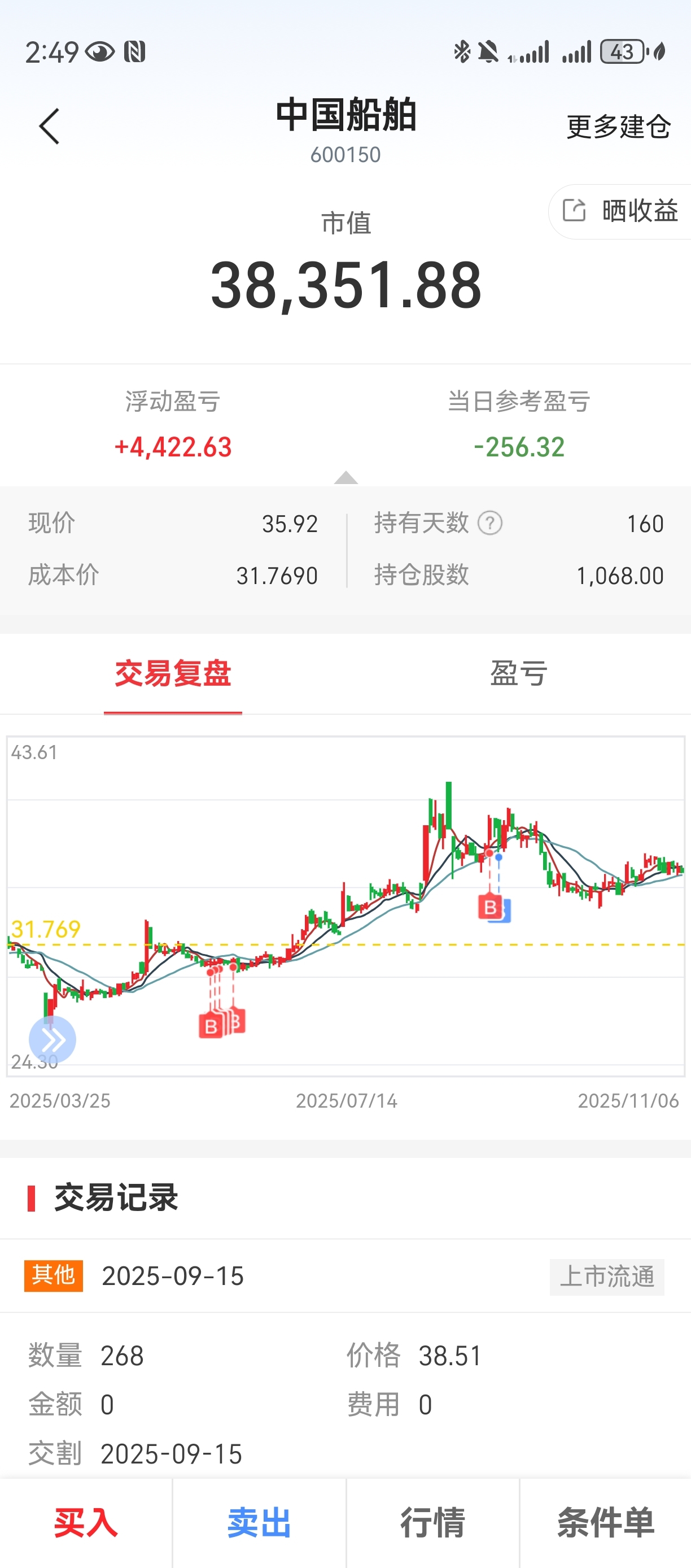 $中国船舶(SH600150)$ 这股票我就当他不存在了