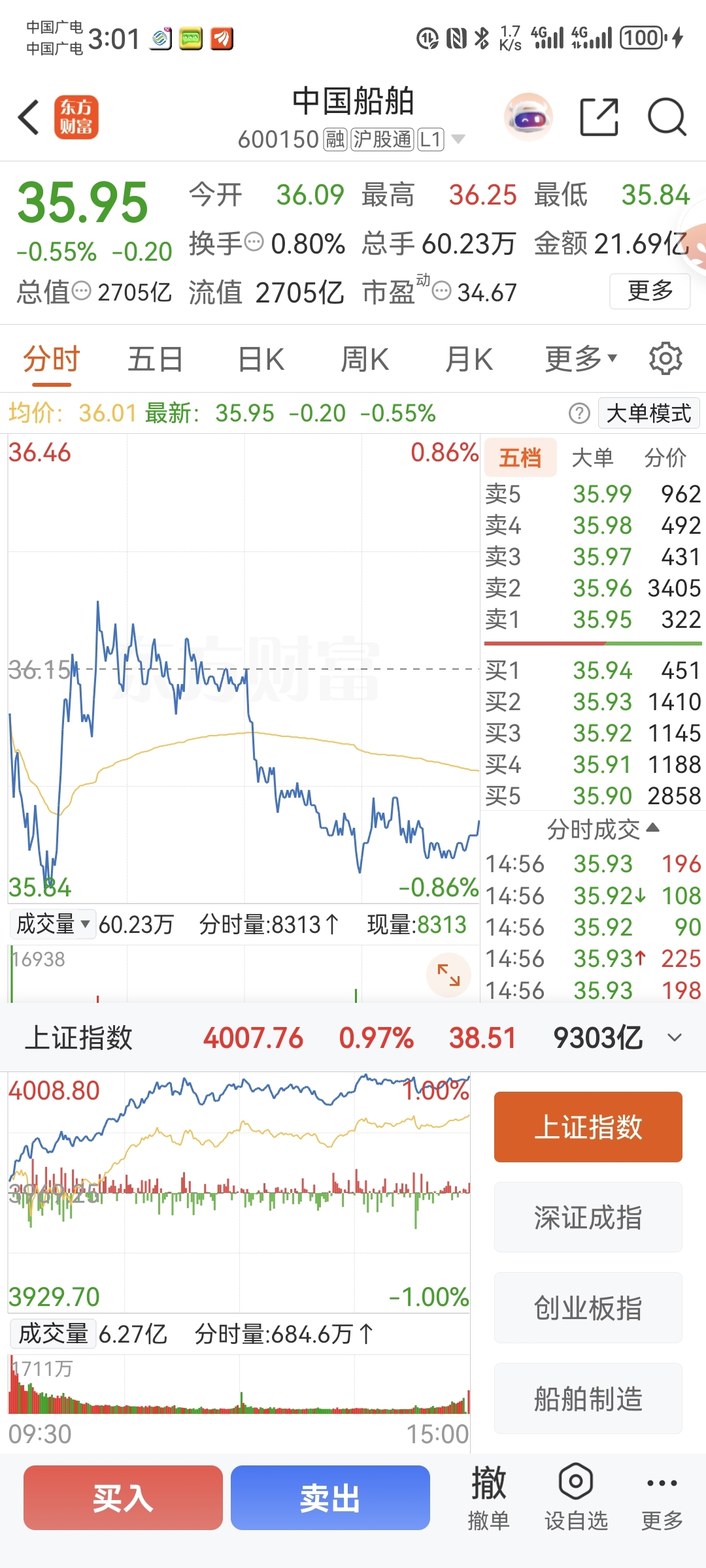 $中国船舶(SH600150)$ 俗话说和气生财,主力却逆天而行,以致,必然!