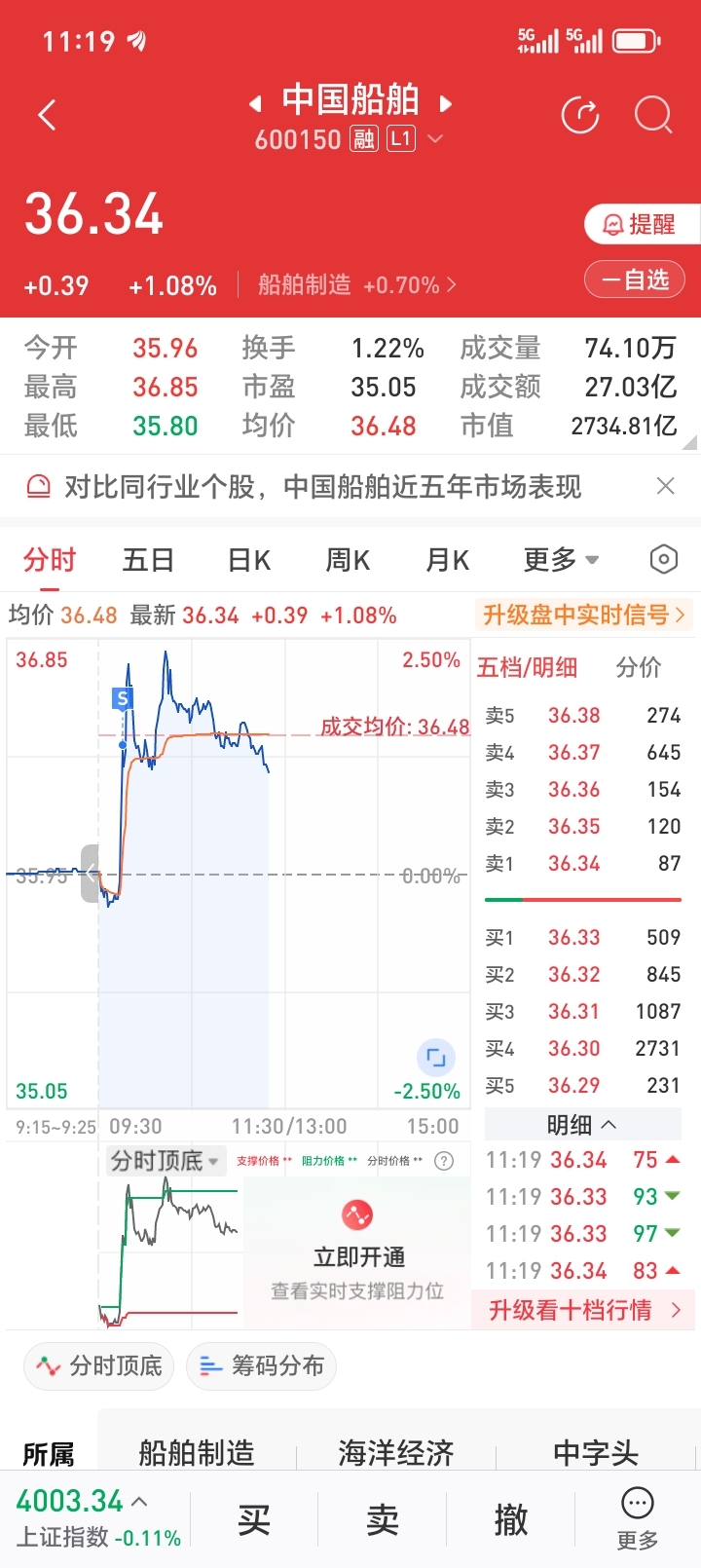 $中国船舶(SH600150)$ 我卖了你可以冲上去了