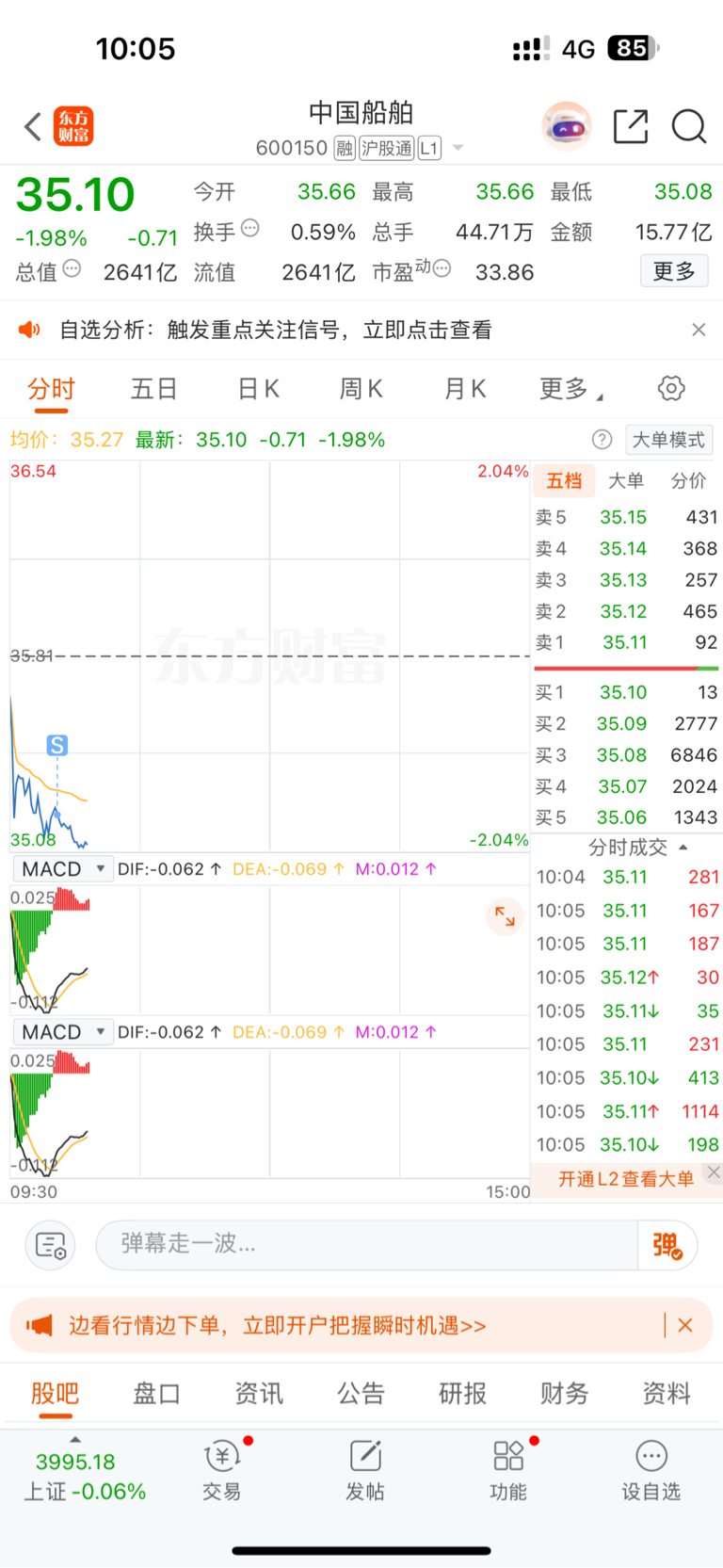 趋势已调整,止损离场。$中国船舶(SH600150)$