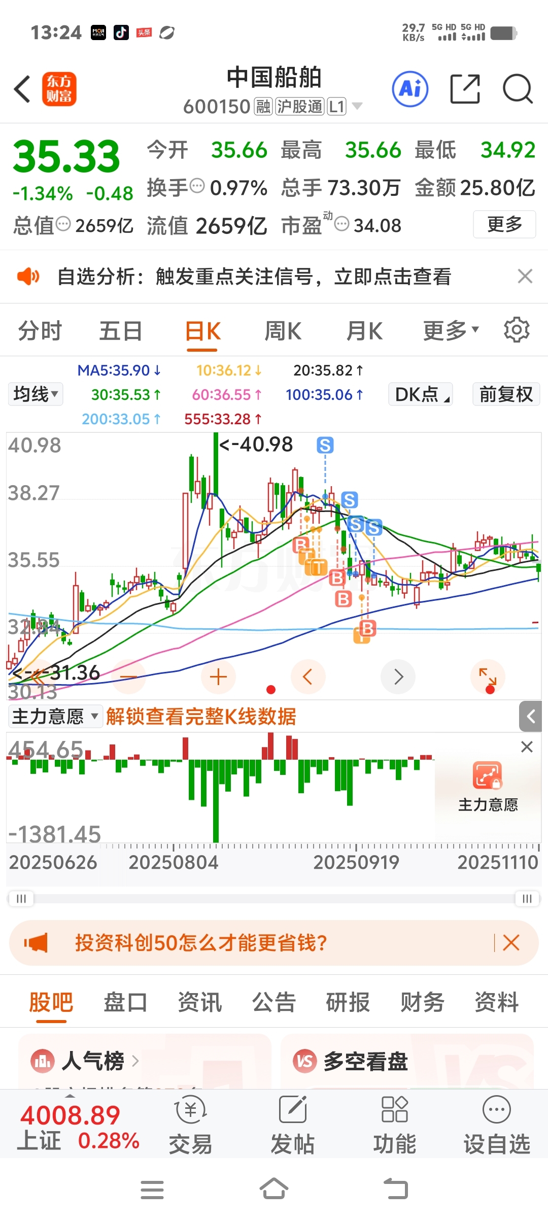 $中国船舶(SH600150)$ 这杂毛会把老子磨死