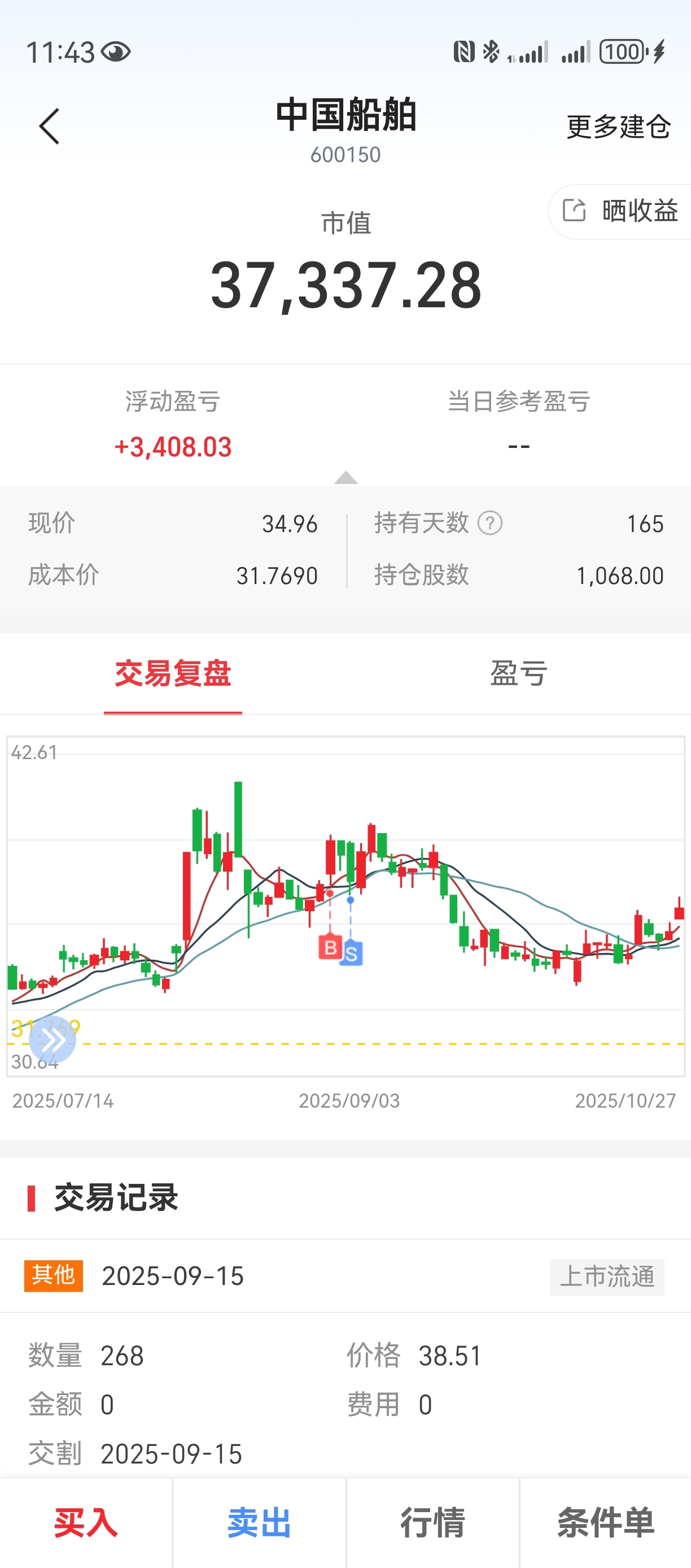 $中国船舶(SH600150)$ 跌到我成本线我再投入3W