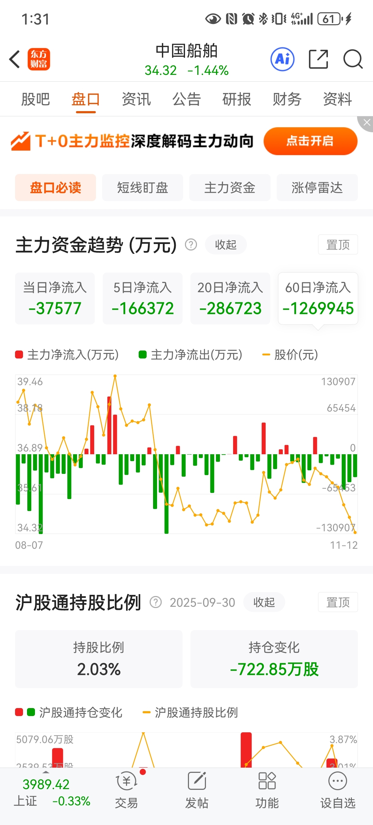 $中国船舶(SH600150)$ 60天,流出130亿,斯透透!