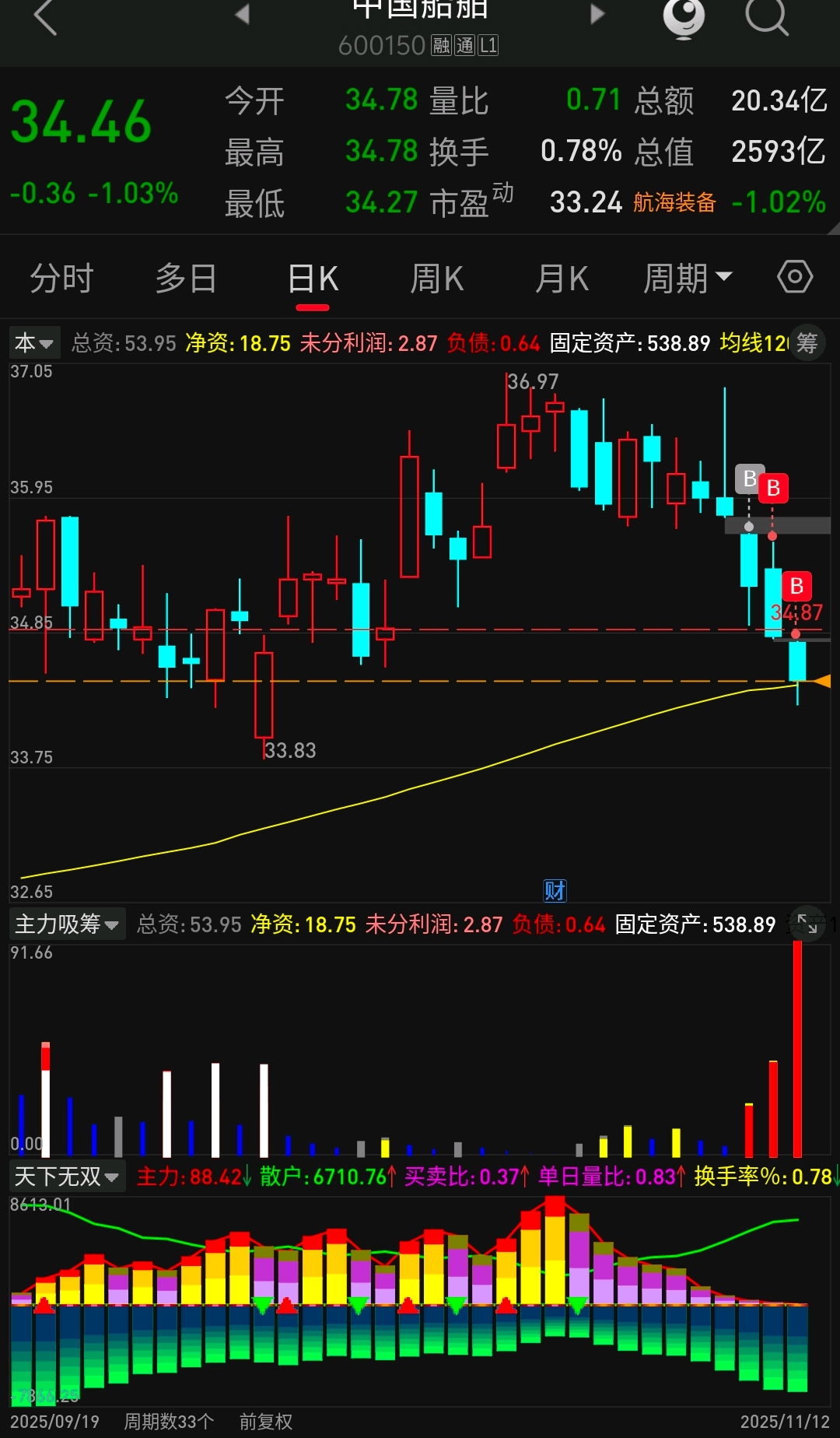 $中国船舶(SH600150)$