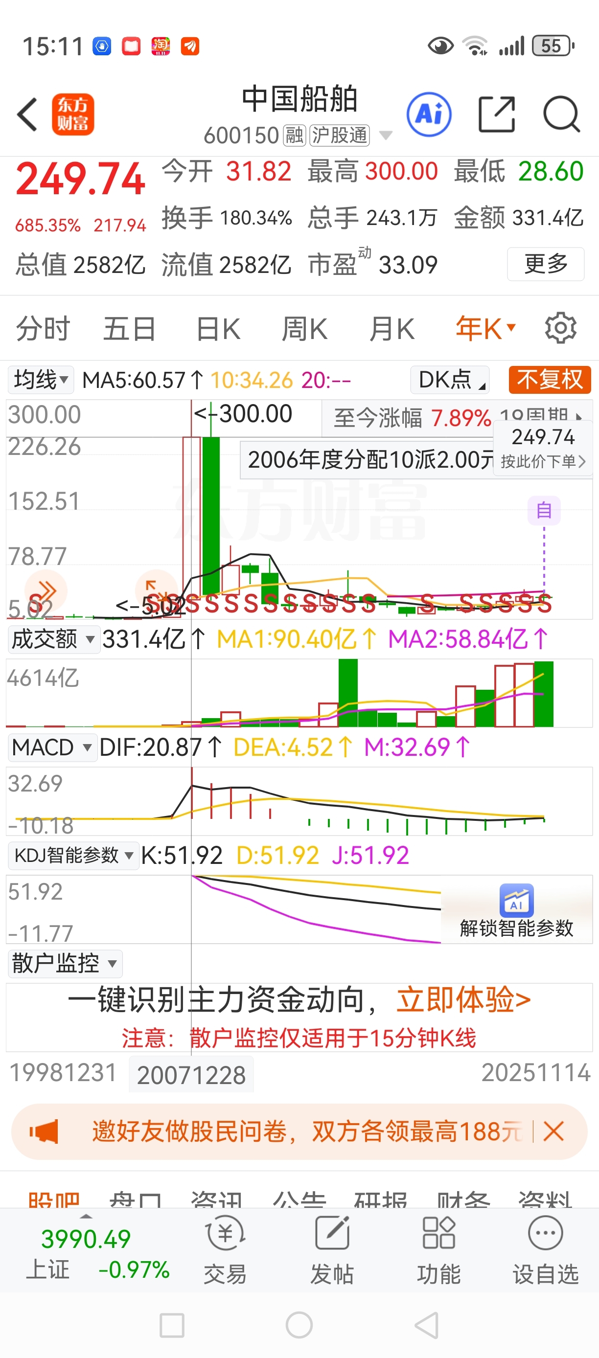 $中国船舶(SH600150)$ 有谁算过06年上市到现在分红,送股配股一共多少?300到现在34.50价格。
