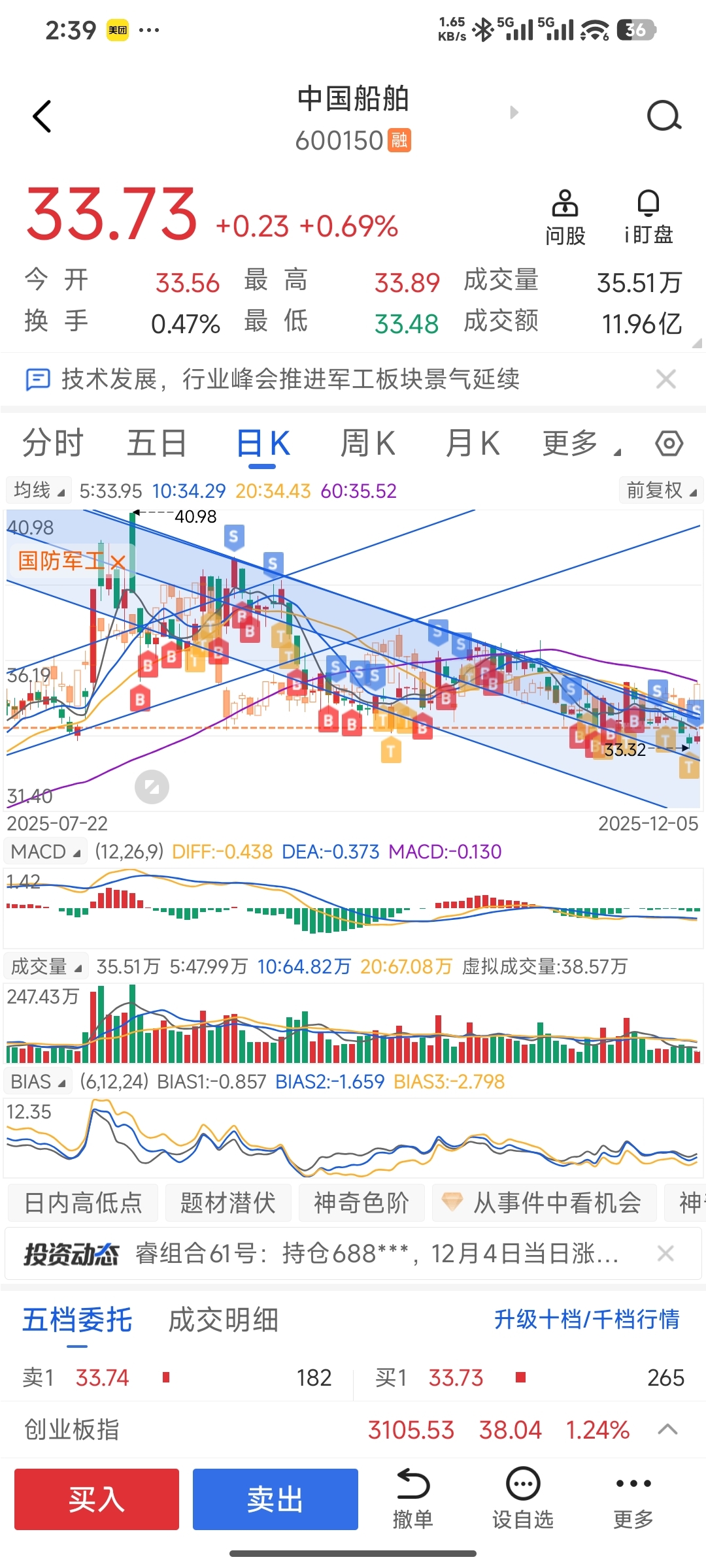 $中国船舶(SH600150)$ 今天清仓解脱了,10万满仓干亏了4000,下跌趋势没办法,t的已经很好了,还是救不了