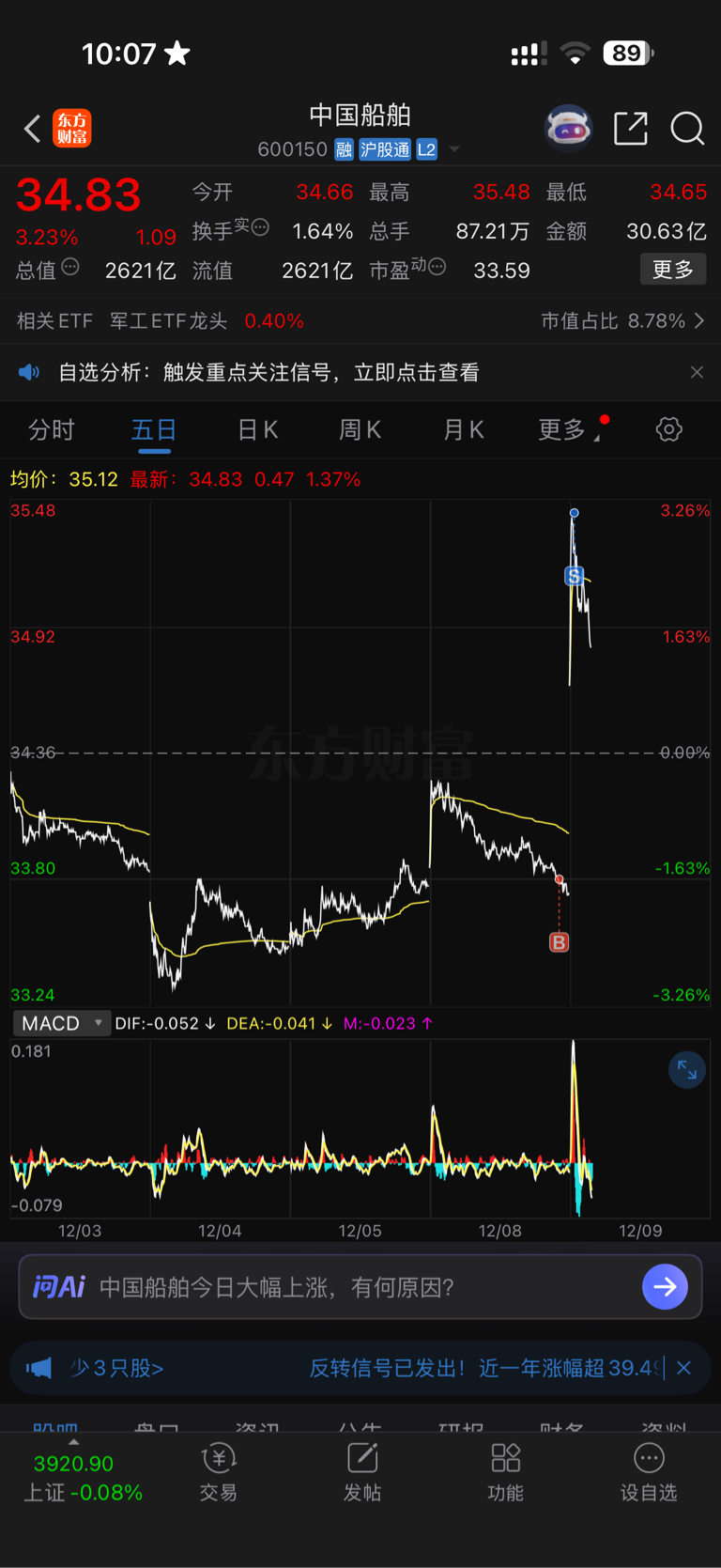 $中国船舶(SH600150)$ $中国动力(SH600482)$ 今天高开就走,不知道是对是错,很看好船舶板块,但上次在动力啥都没吃到