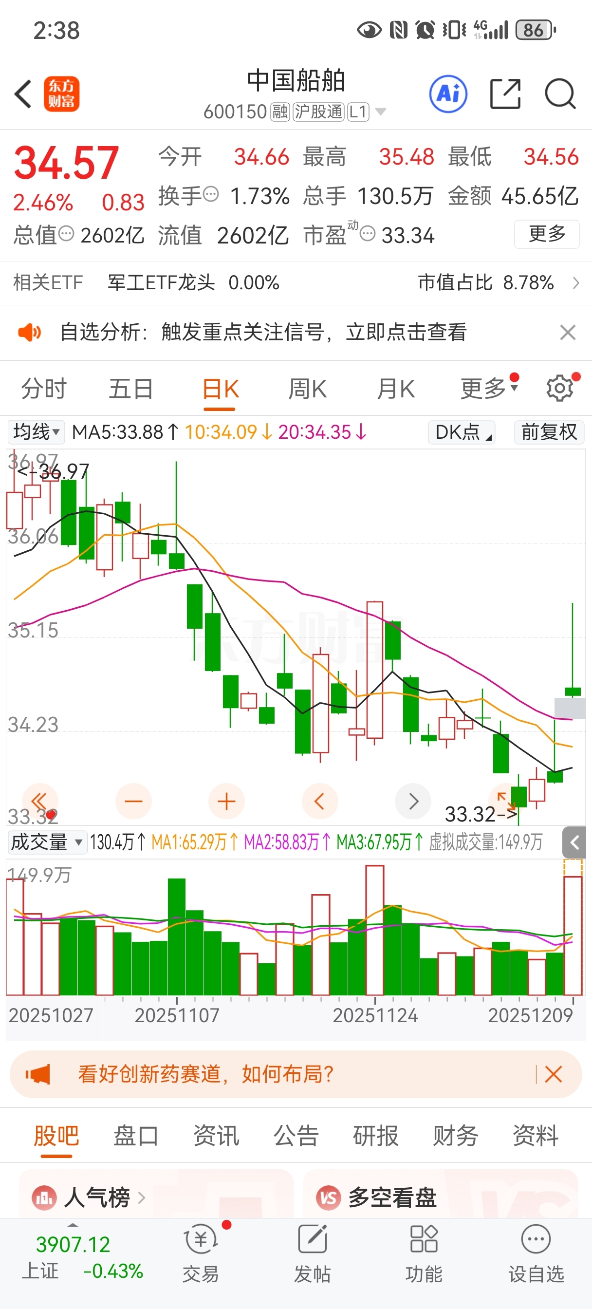 $中国船舶(SH600150)$ 果然有收了跟绿线,废船啊,央企,在恶心人这方面,你从来没出过意料!
