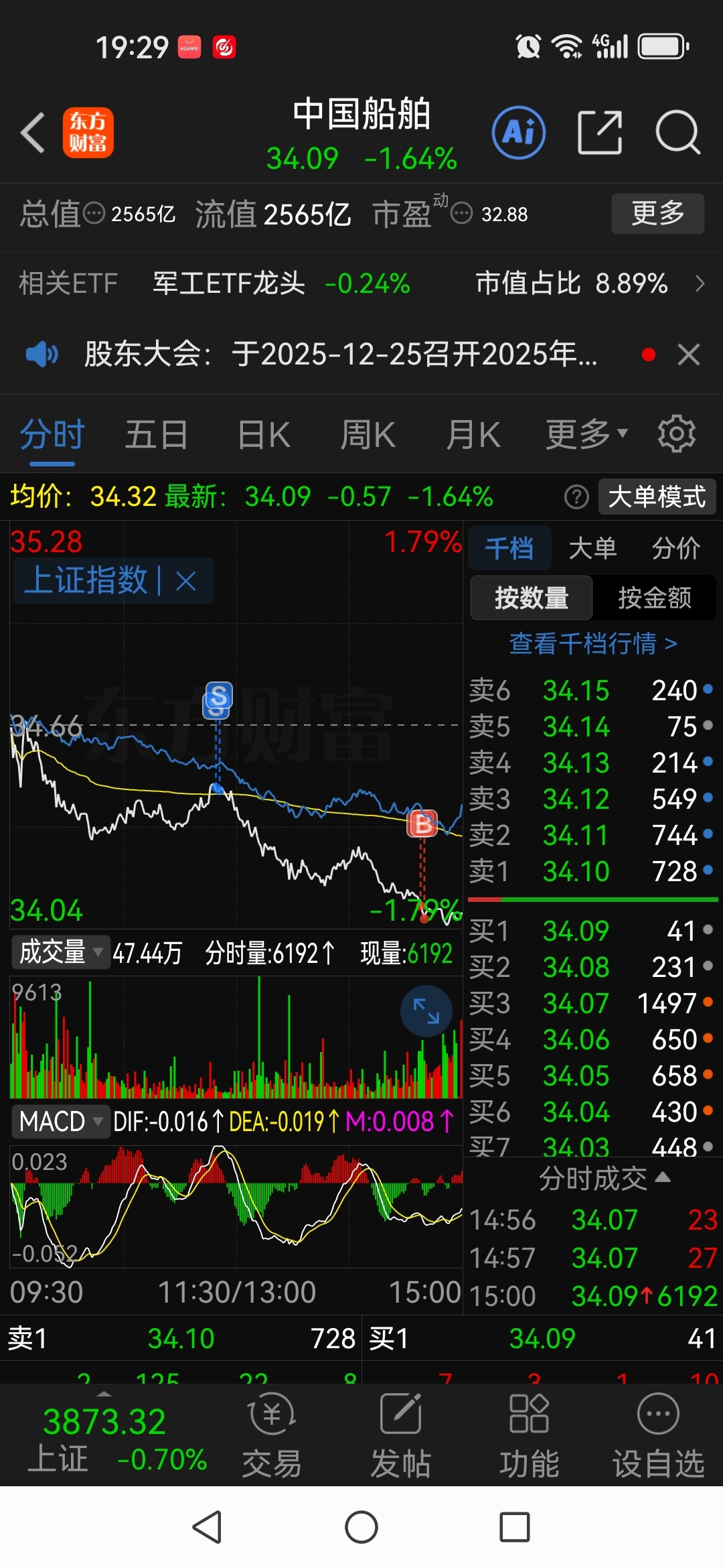 $中国船舶(SH600150)$ 只有小幅的T可做,明天赚三四毛就走,短线就只1%至2%的空间