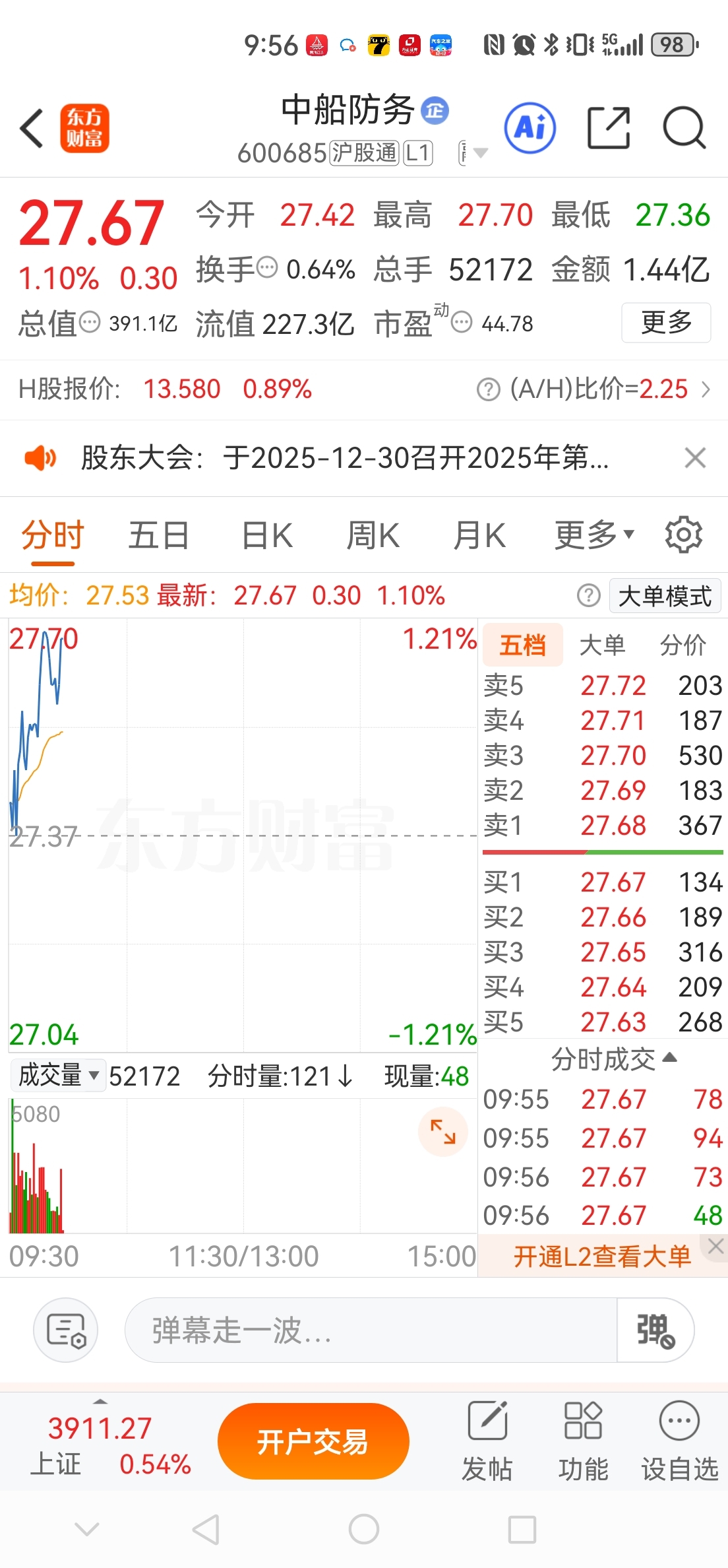 $中国船舶(SH600150)$ 中船防务就是比你牛,每次都涨得!