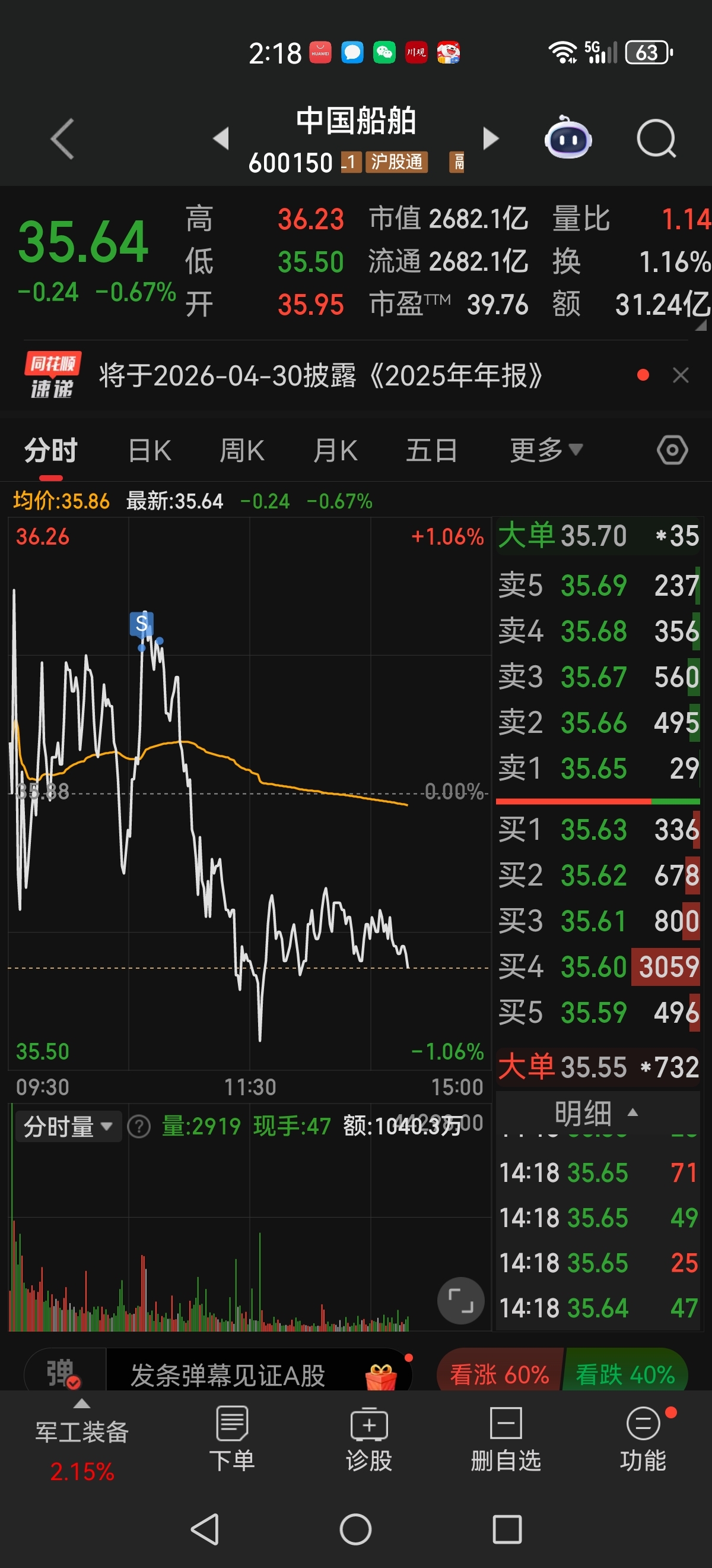 $中国船舶(SH600150)$ 啥也别说了就服今天这个第六感