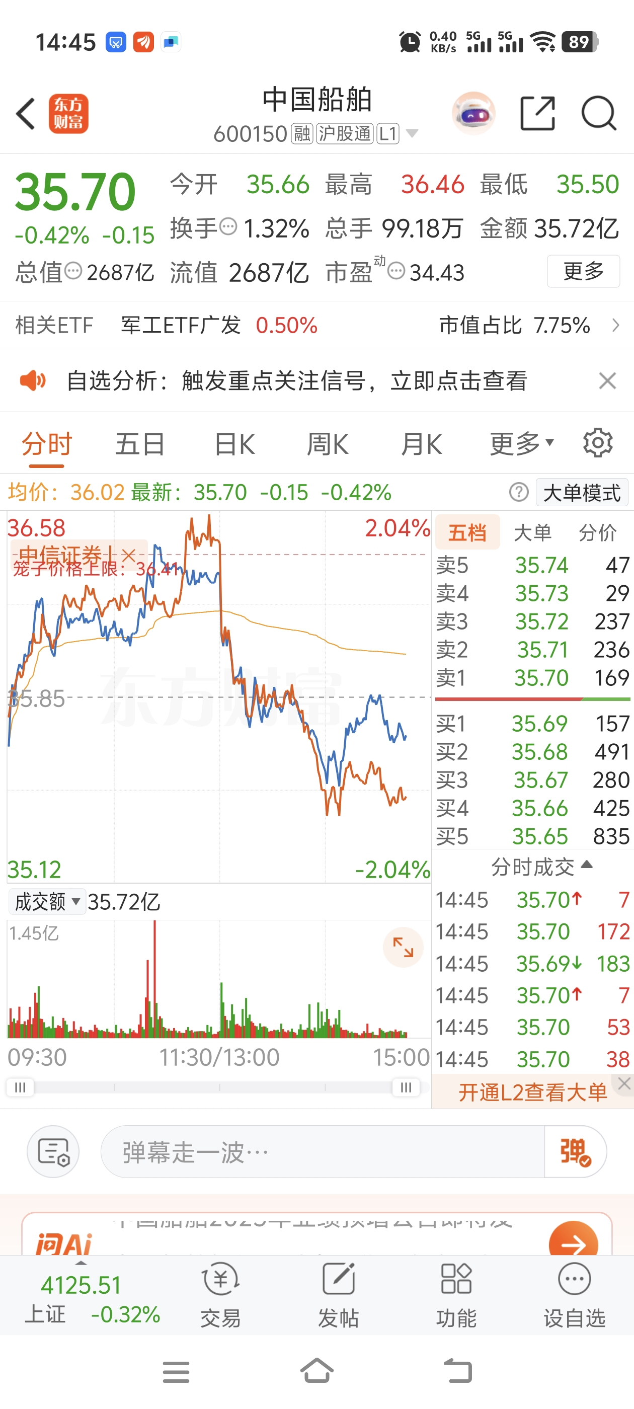 $中国船舶(SH600150)$ 跟着中信证券打压指数用的。