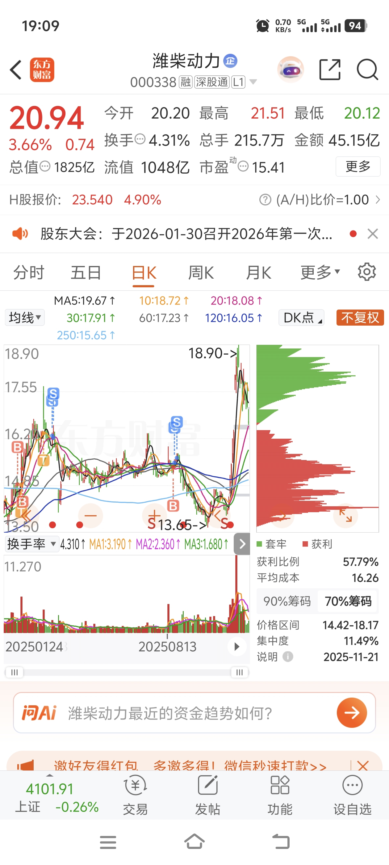 要小心船舶长涨前挖深坑!潍柴动力长期不涨,还爆跌,主力挖深坑!