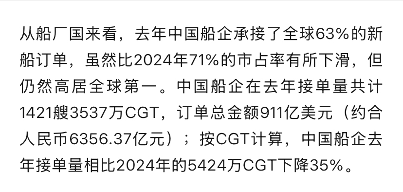 $中国船舶(SH600150)$ $中国动力(SH600482)$ 最大的隐患,也是最实际的问题,船订单下滑显著,严重影响机构信心,2025年下半年机构跑完了,2026年订单依旧稀疏,若不是牛市行情,得多惨