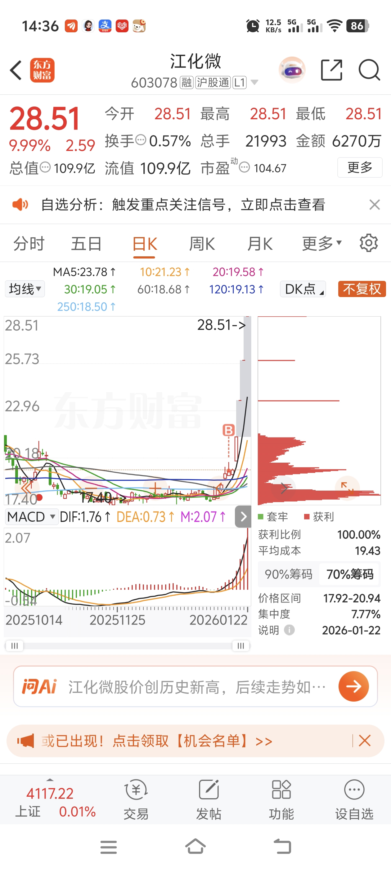 与前年收盘,涨了5分!还是小票好,一个小利好,4个板