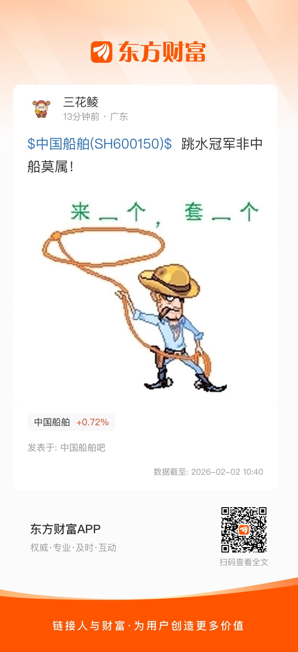 $中国船舶(SH600150)$  跳水冠军非中船莫属!