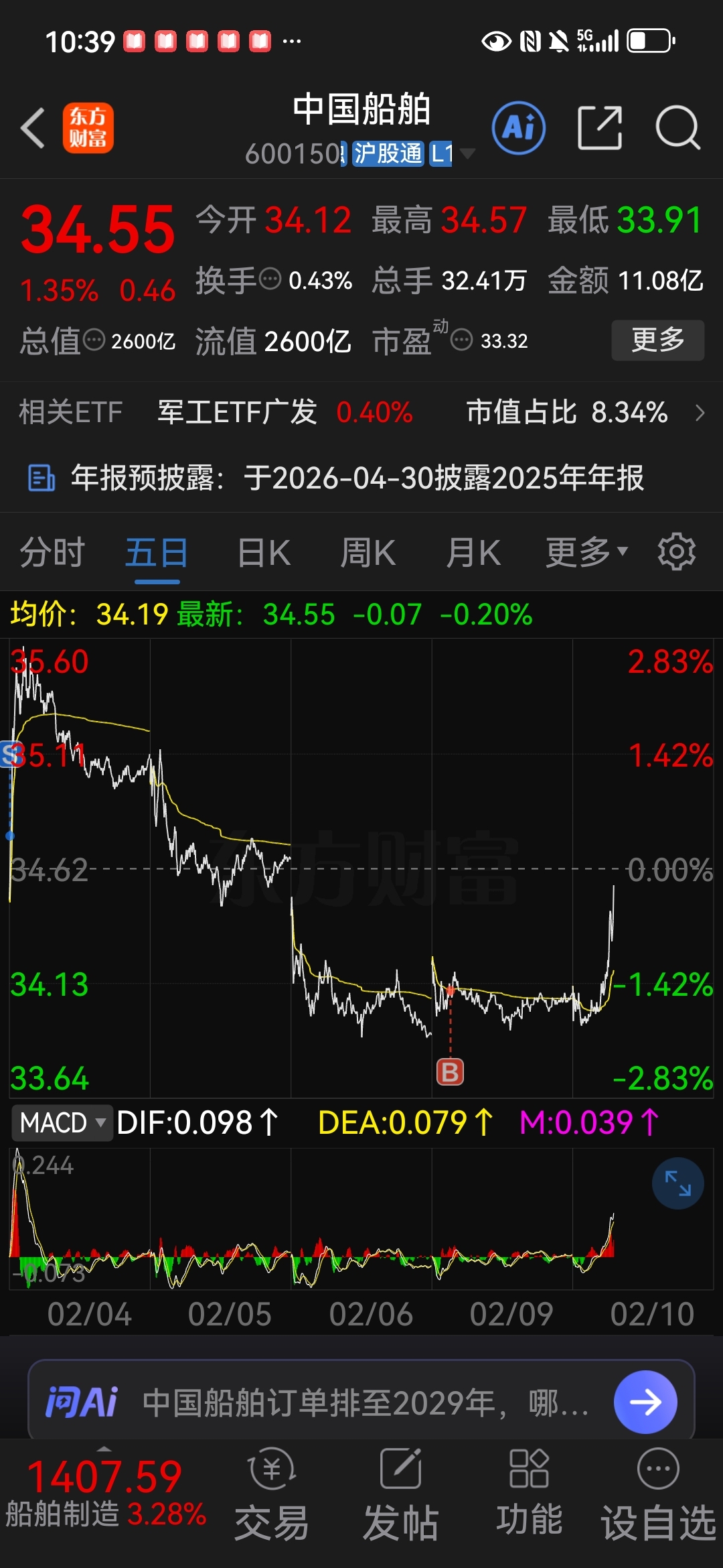 $中国船舶(SH600150)$ 不会涨停吧