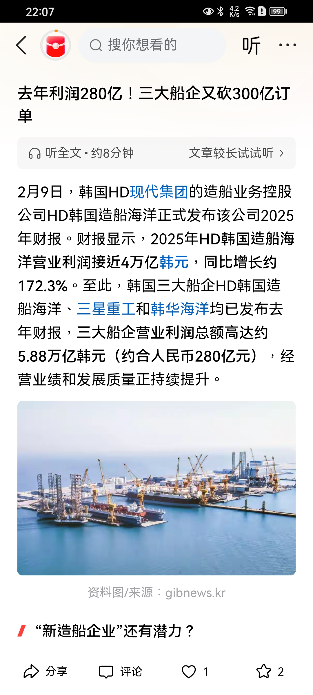 $中国船舶(SH600150)$ 和韩国相比,我们的利润和韩国的利润差距这么大吗?高额的股价上不去。