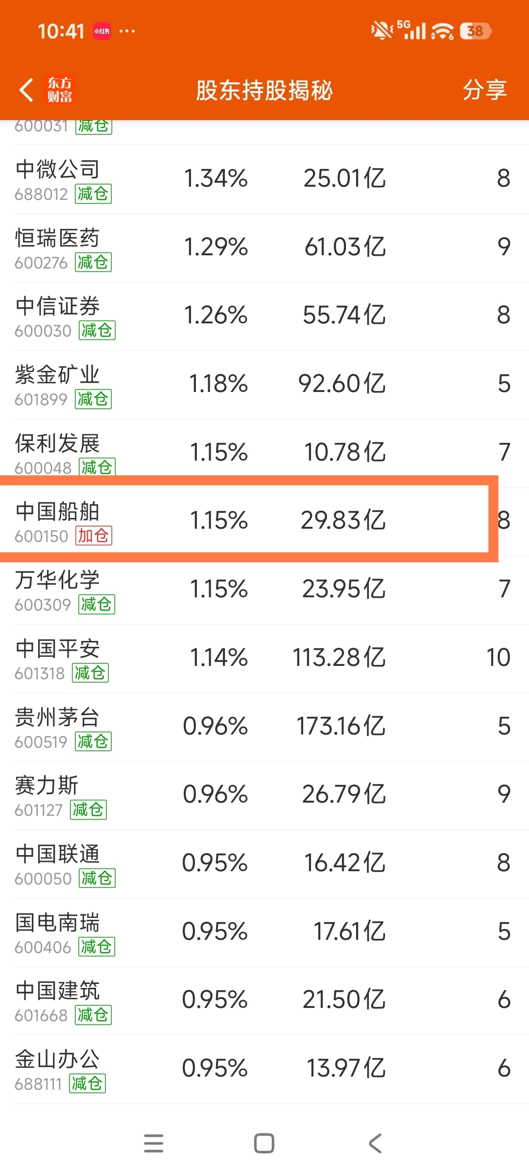 看看50ETF,只加仓一只股,就是中船,其余37家都减仓。这说明什么?现在又出来