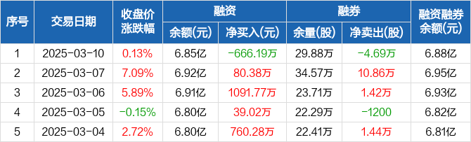 航天机电:融资净偿还666.19万元,融资余额6.85亿元(03-10)