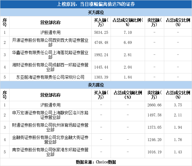 沪股通现身龙虎榜,航天机电涨停(11-28)