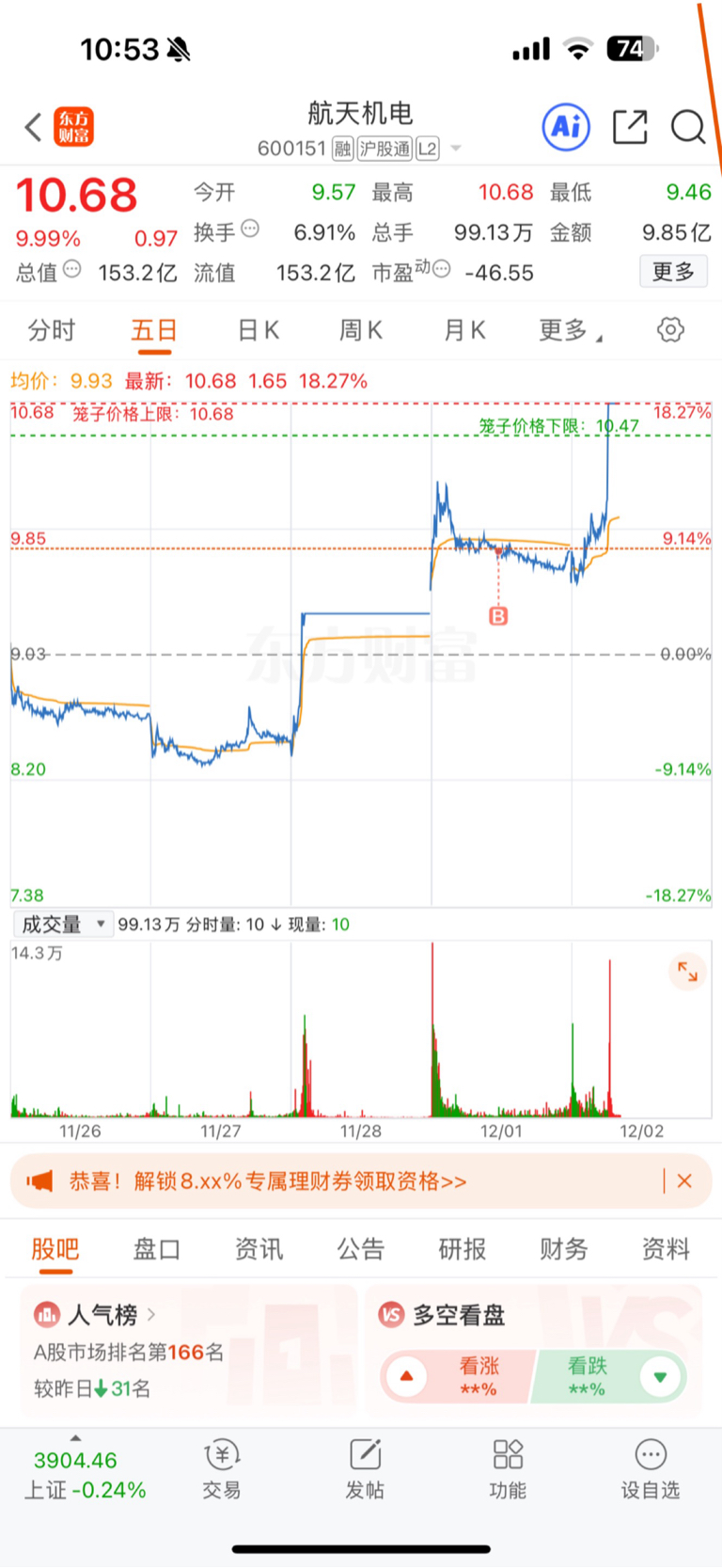 $航天机电(SH600151)$ 股票就是反人性别人恐惧我贪婪