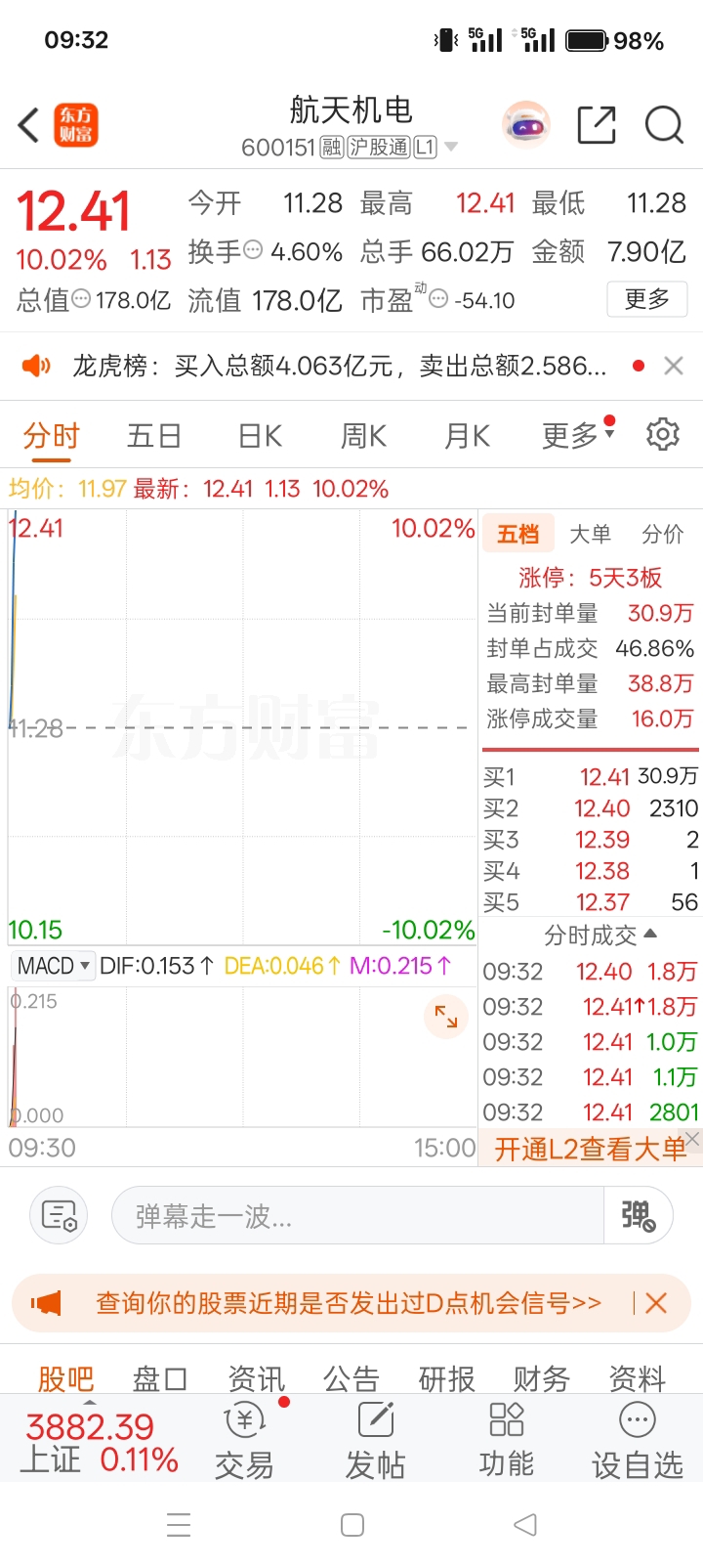$航天机电(SH600151)$ 昨天通知各位10.5附近进的朋友,今天继续拿好,强势封板!坐等吃肉