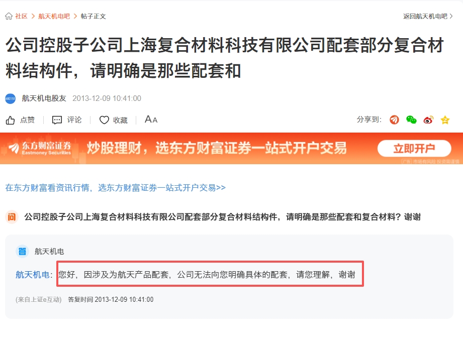 兄弟们,我挖的狠不狠,董秘回复,因涉及航天产品配套,无法回复。还说不是航天,自己