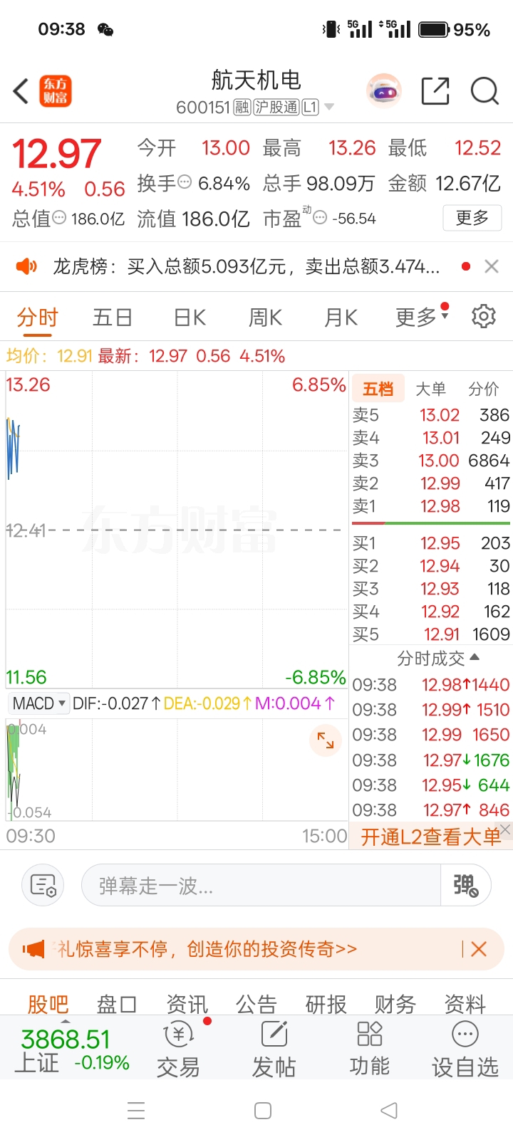 $航天机电(SH600151)$ 进了航天机电的朋友,前面两天收获20cm今天继续冲高,目前周五可以先落袋为安,各位兄弟们,然后迎接我下周更好的布局