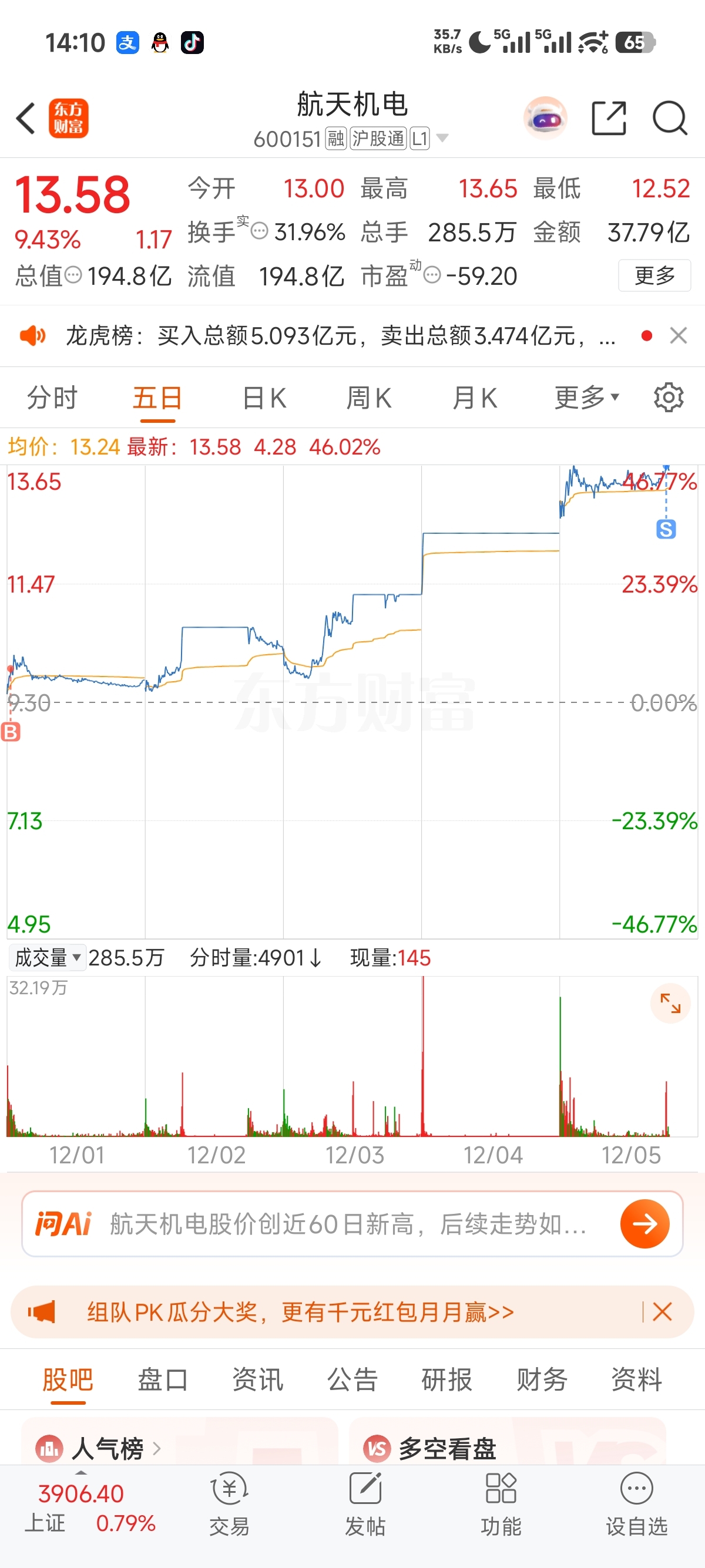 $航天机电(SH600151)$ 我先撤了,留下的发财