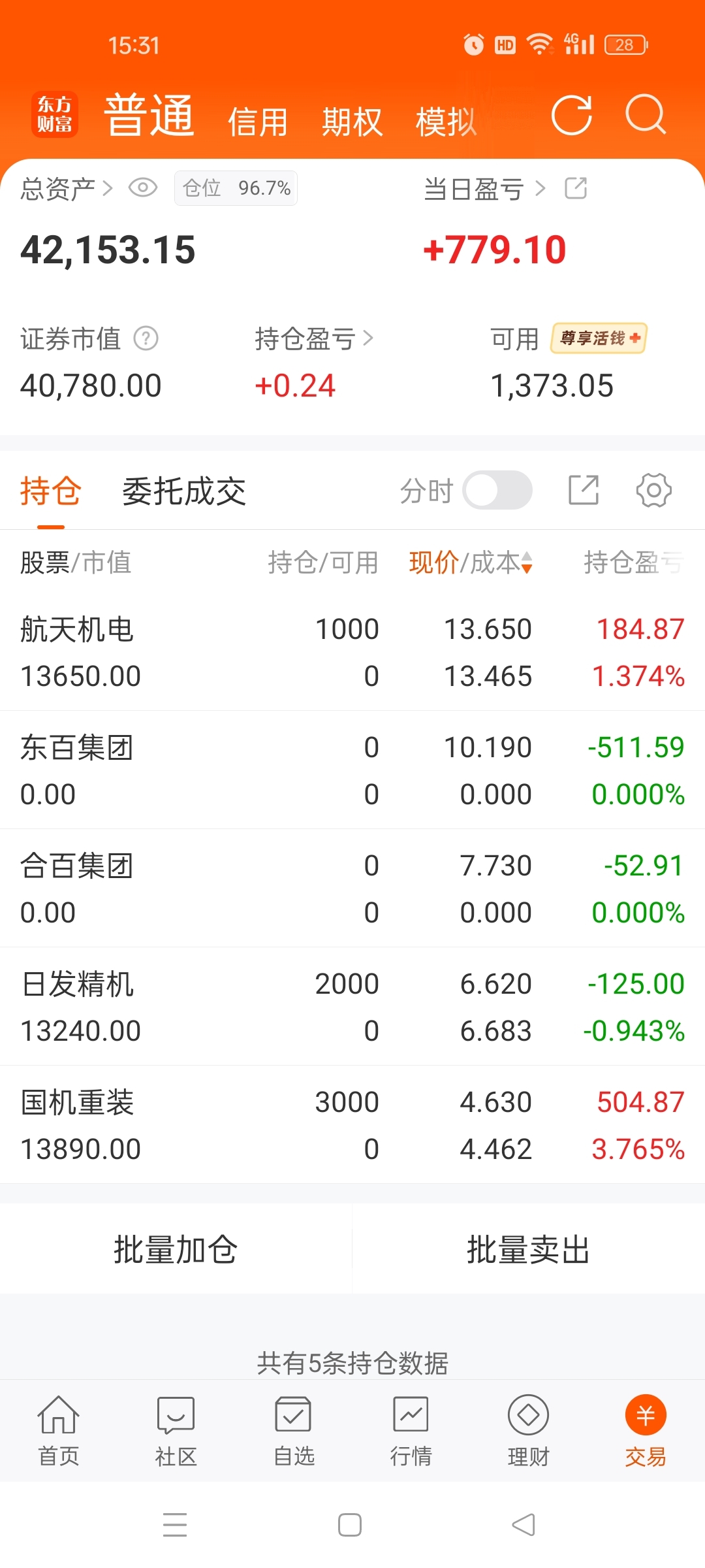 $航天机电(SH600151)$ $日发精机(SZ002520)$ $国机重装(SH601399)$ 合百集团,东百集团,记录每一个交易日,实盘记录