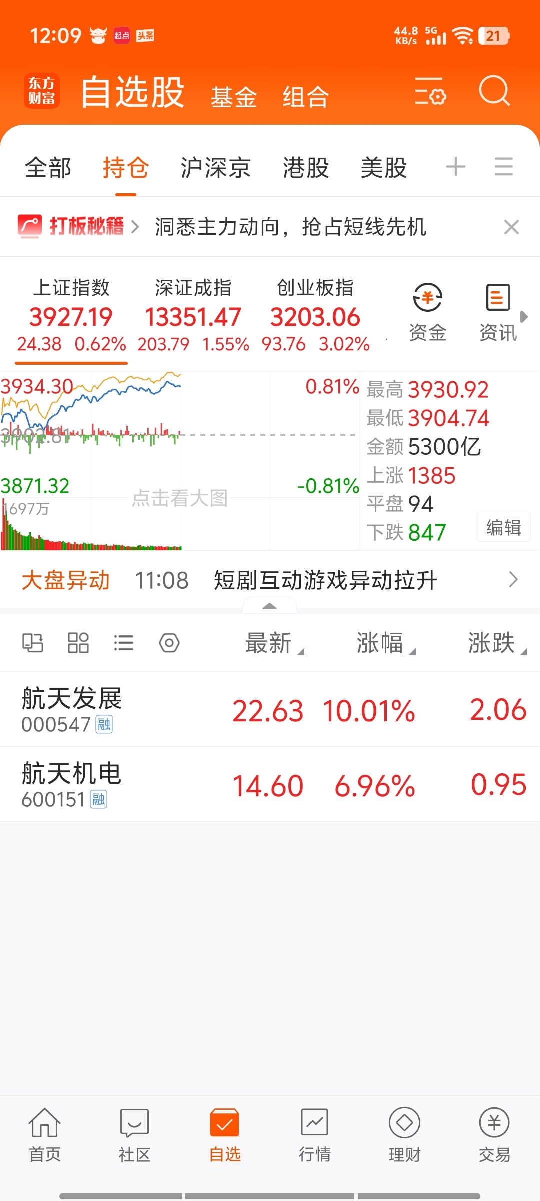 $航天机电(SH600151)$ 我也佩服自己,能格局这么久,明明开盘就不及预期。今天是完全的弱。中午开盘看5分钟,不涨停就清仓了。明天弱转强再进。