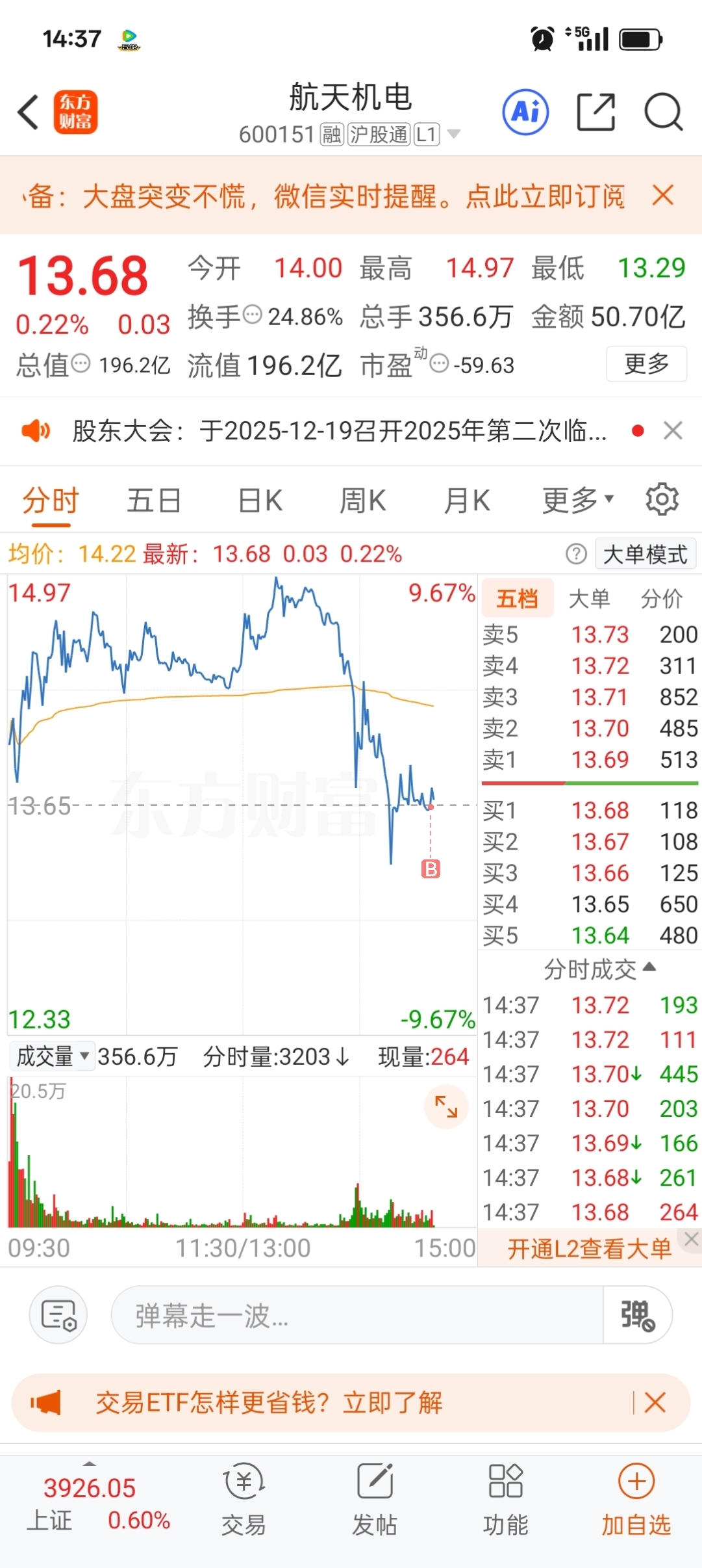 $航天机电(SH600151)$ 今天尾入了 提前放出来了 上了喂