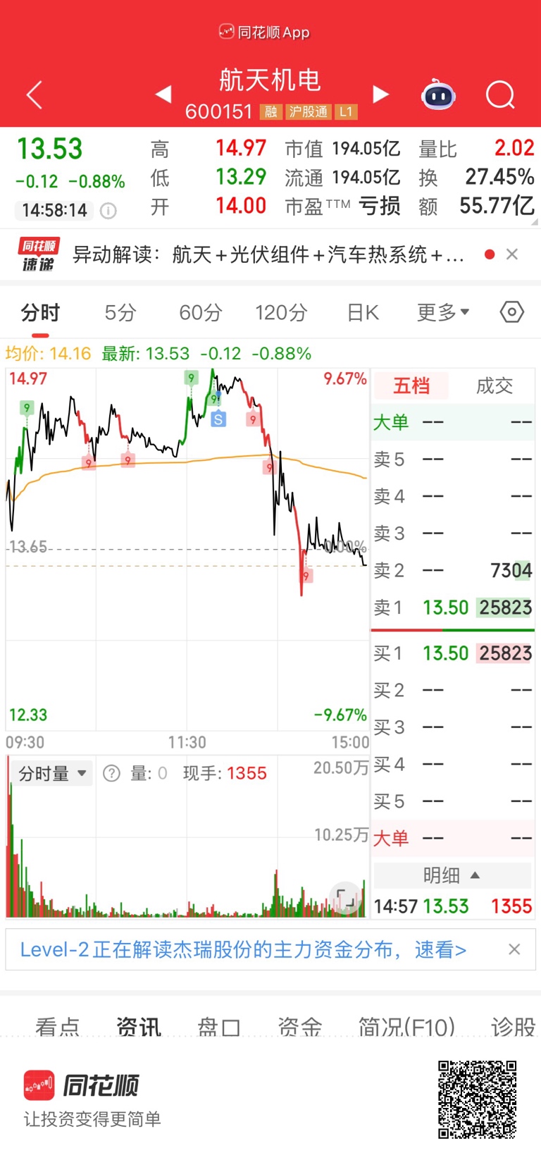$航天机电(SH600151)$ 怎么回事,还在后悔没能涨停卖