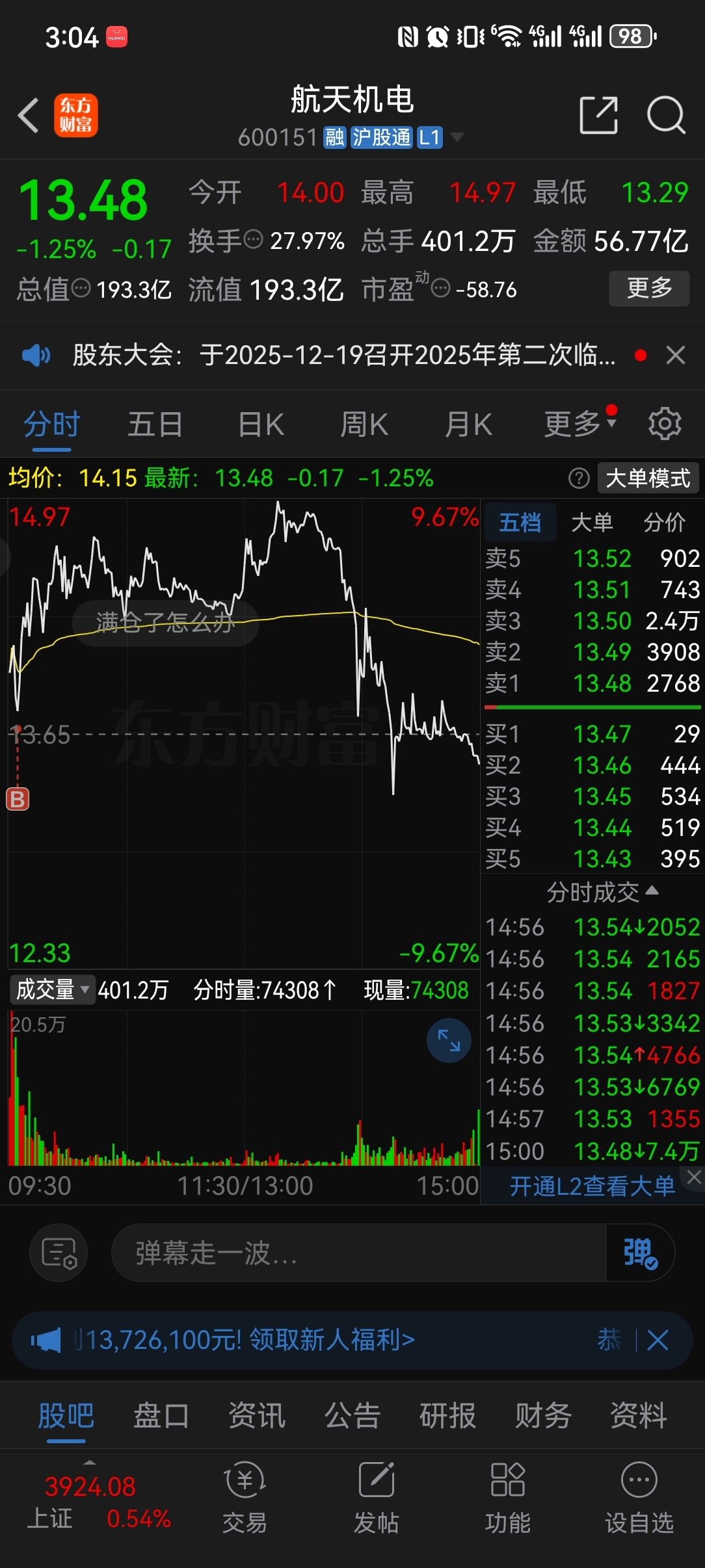 $航天机电(SH600151)$ 你可真行,中午一度认为自己才买了1.5成仓后悔呢!一觉醒来这是想要我明天加仓干是吧!幸好防了一手买了一只闵发铝业2.5成仓