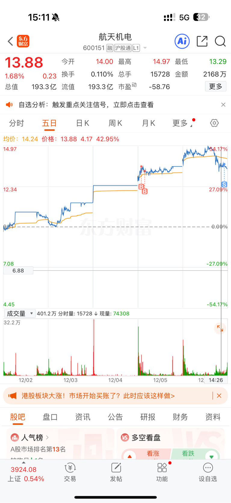 $航天机电(SH600151)$ 中午赢6千 下午亏2千 愁勾史不知道在干嘛