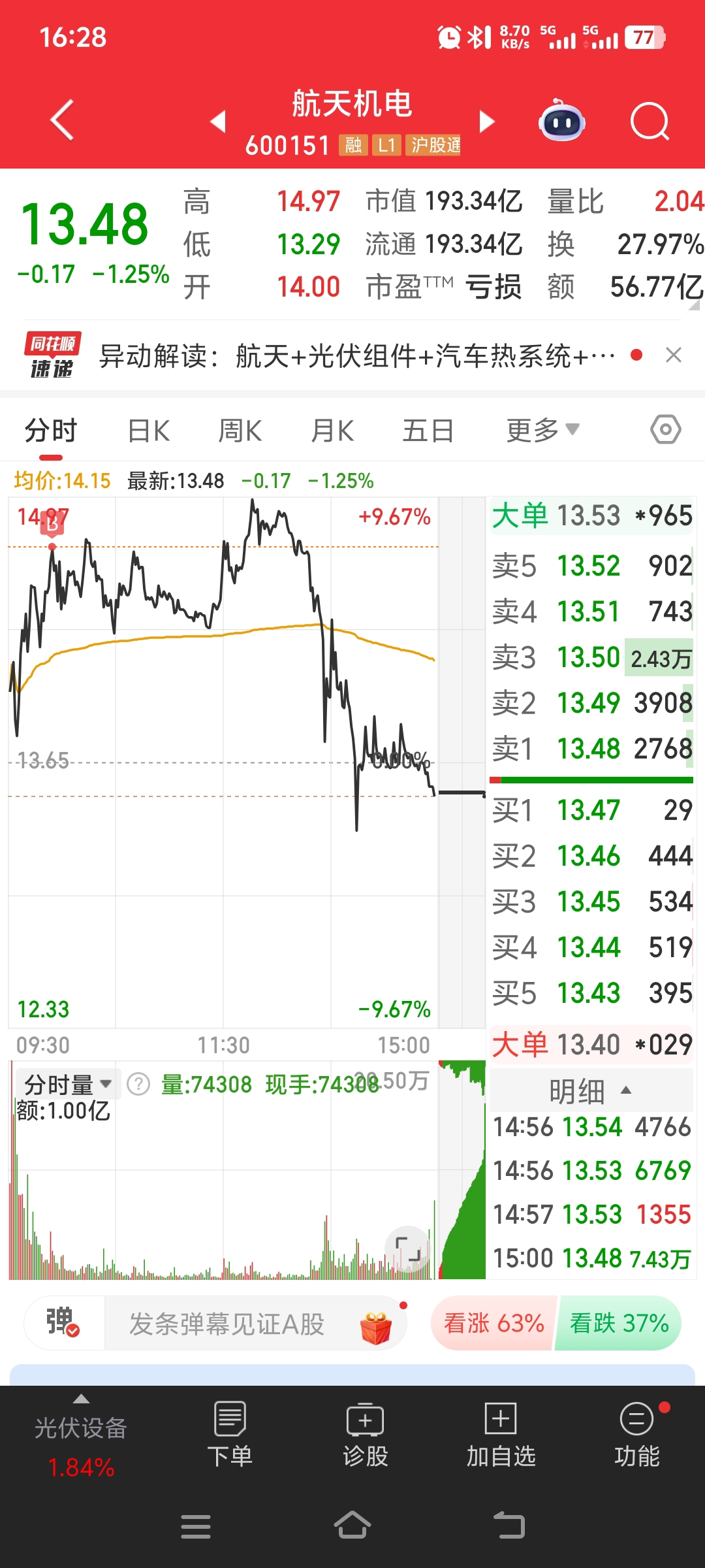 $航天机电(SH600151)$ 一手买崩