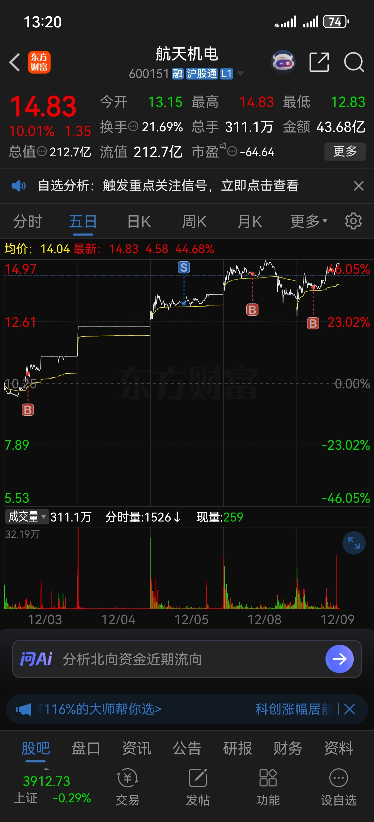 $航天机电(SH600151)$ 浮盈加仓,重仓猛干
