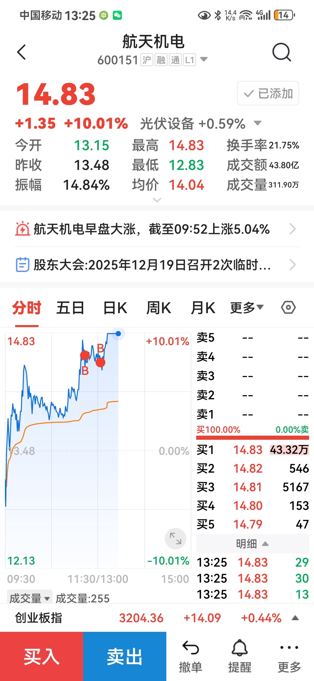 $航天机电(SH600151)$ 太强了!及时上车了,明天有大肉吃了!