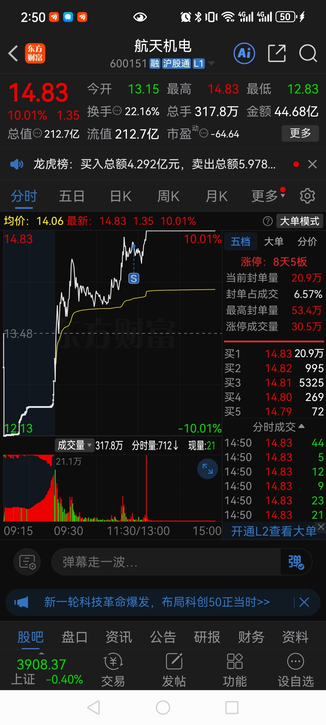 $航天机电(SH600151)$ 小弟先走一步,留下的发财
