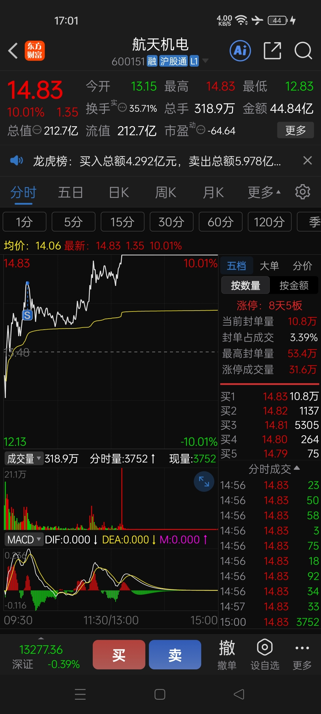 $航天机电(SH600151)$ 我以为自己卖在顶部,回来一看又卖飞了