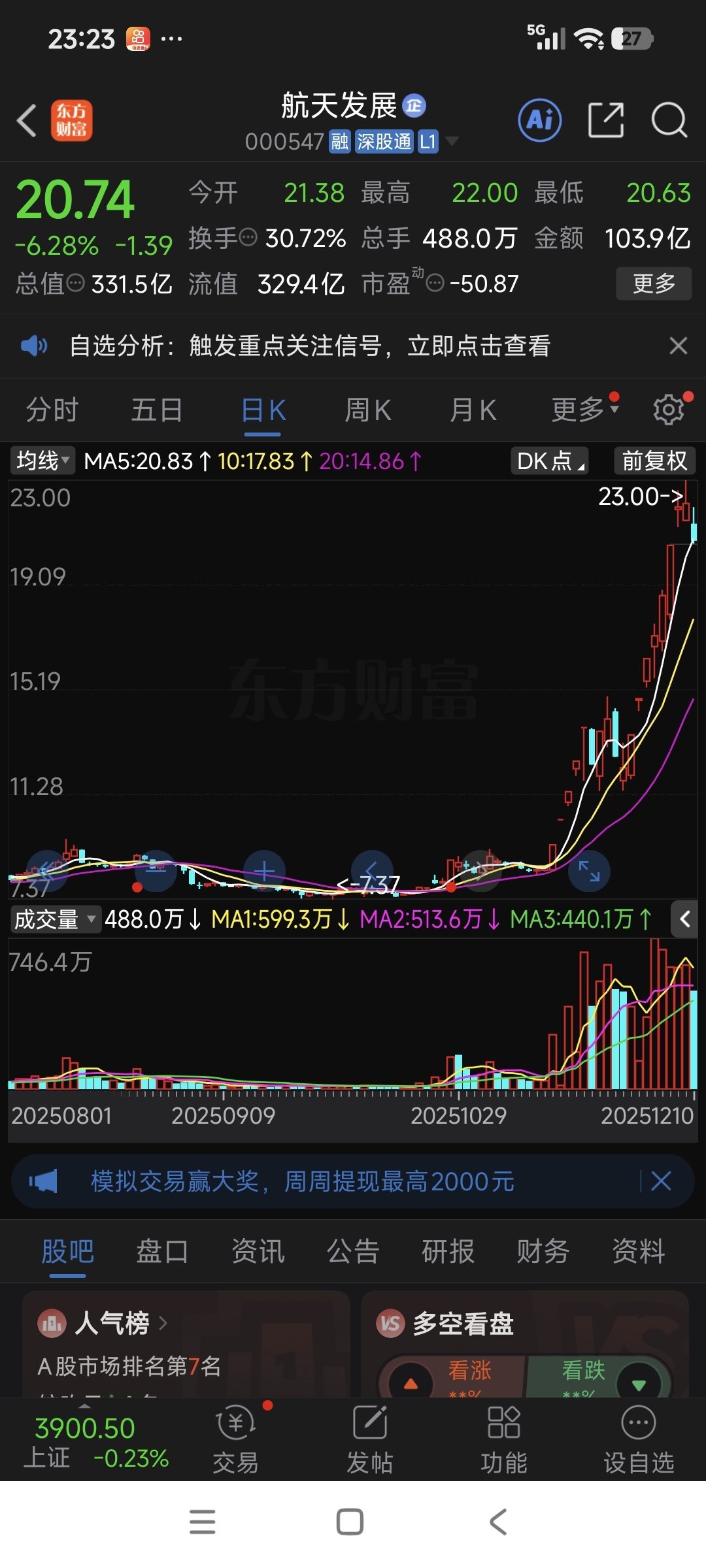 $航天机电(SH600151)$ 看看这个图,你们觉得航天机电到顶了吗?