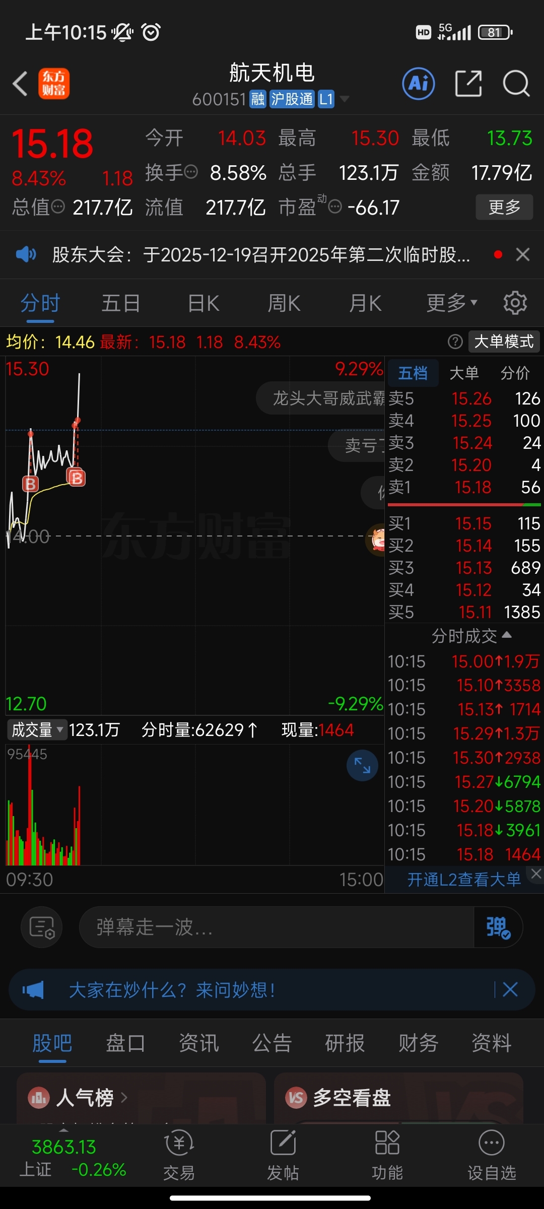 $航天机电(SH600151)$ 预判成功,必须涨停