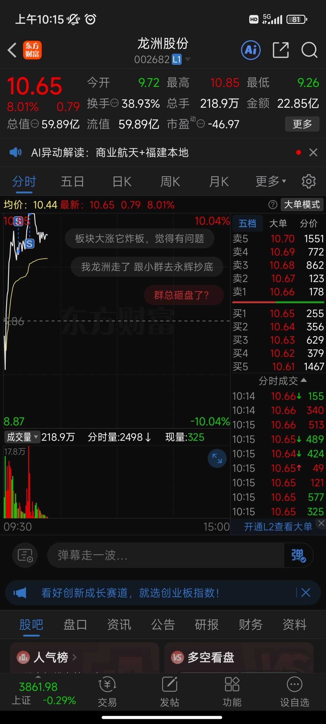 预判成功,必须涨停龙洲还有一点仓位锁了,陪群总造妖别开,开就弱了看你承接强才上的