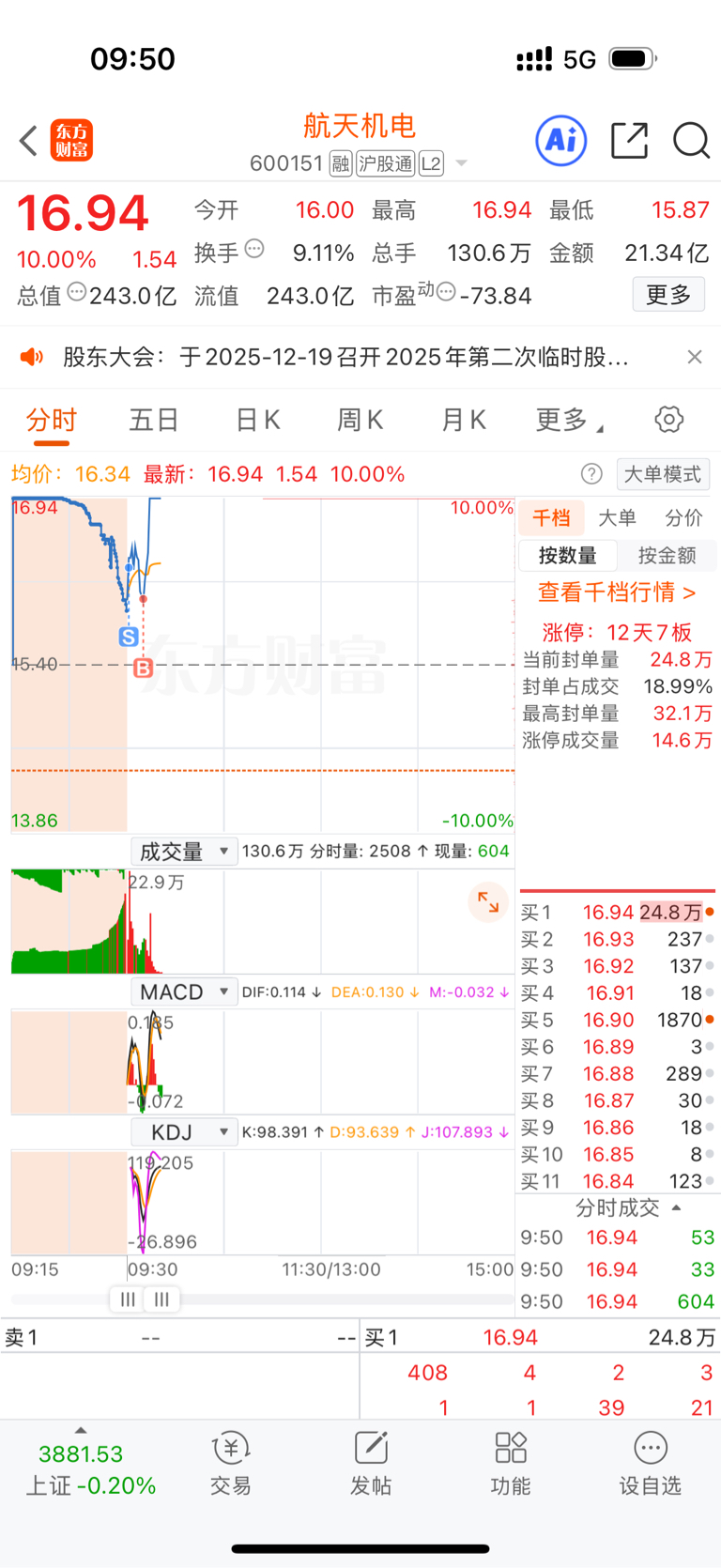 $航天机电(SH600151)$ 吓我一跳啊